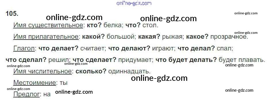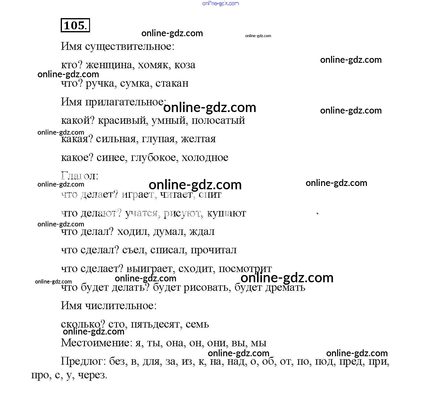 Готовые домашние задания по Русскому языку за 4 класс Рабочая тетрадь Канакина Школа России 2013 - Часть 1. Задания 105