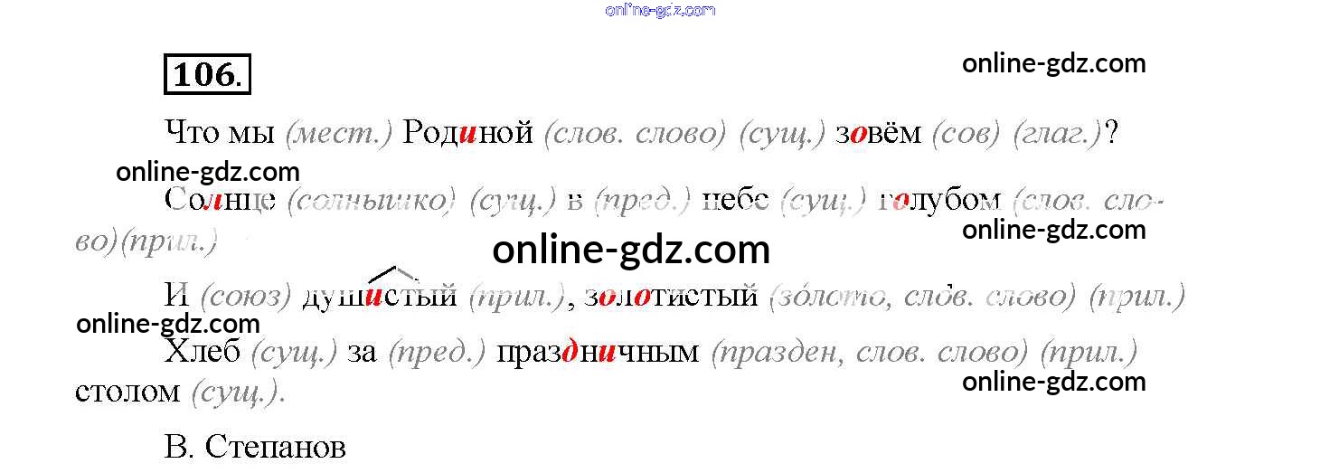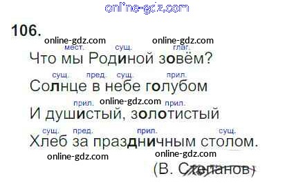 Готовые домашние задания по Русскому языку за 4 класс Рабочая тетрадь Канакина Школа России 2013 - Часть 1. Задания 106