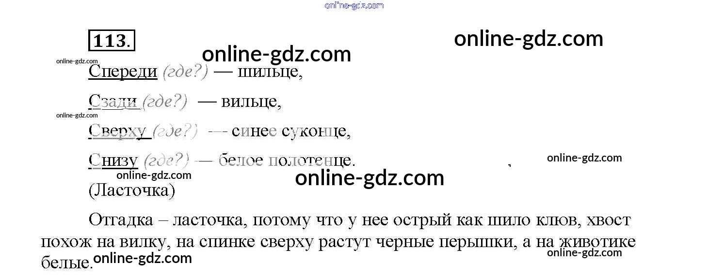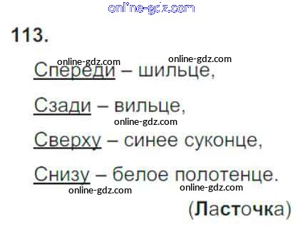 Готовые домашние задания по Русскому языку за 4 класс Рабочая тетрадь Канакина Школа России 2013 - Часть 1. Задания 113