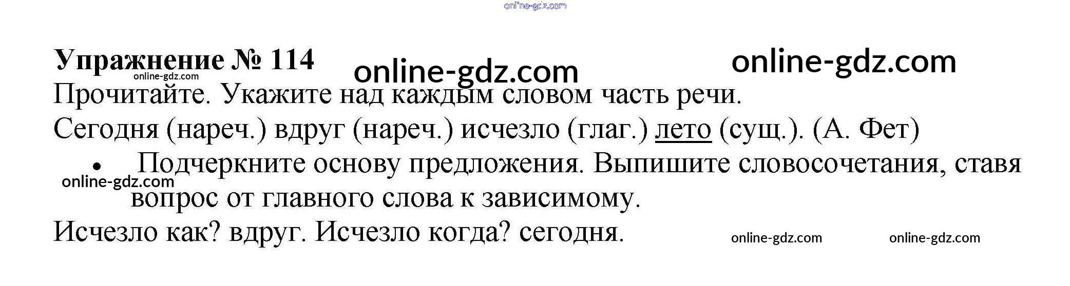 Готовые домашние задания по Русскому языку за 4 класс Рабочая тетрадь Канакина Школа России 2013 - Часть 1. Задания 114