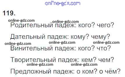 Готовые домашние задания по Русскому языку за 4 класс Рабочая тетрадь Канакина Школа России 2013 - Часть 1. Задания 119