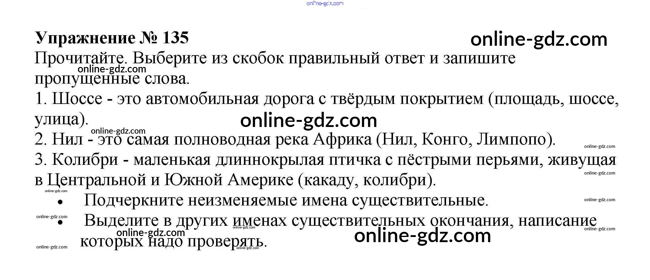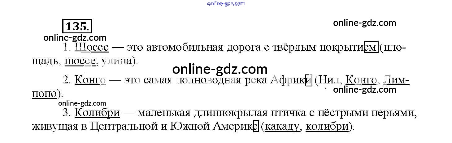 Готовые домашние задания по Русскому языку за 4 класс Рабочая тетрадь Канакина Школа России 2013 - Часть 1. Задания 135