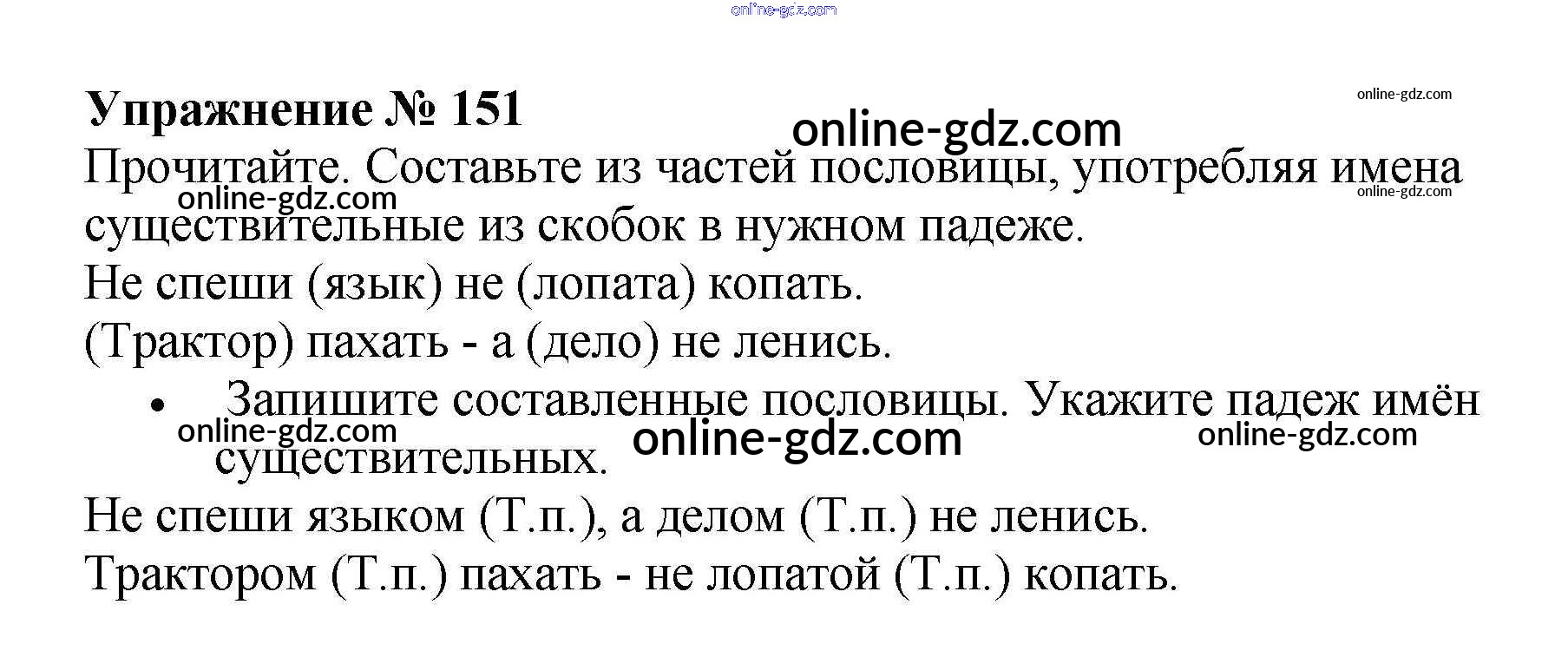 Готовые домашние задания по Русскому языку за 4 класс Рабочая тетрадь Канакина Школа России 2013 - Часть 1. Задания 151