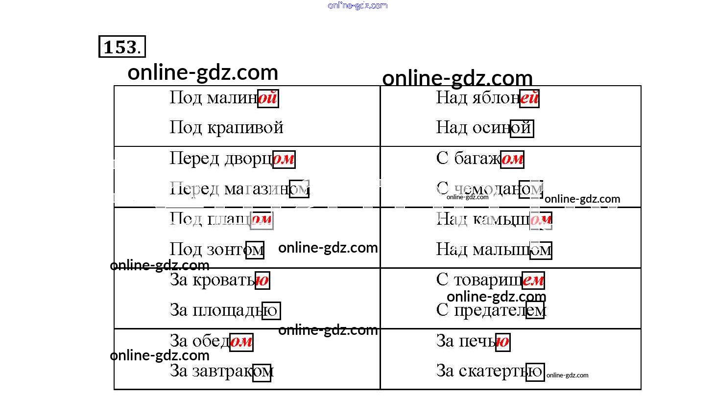 Готовые домашние задания по Русскому языку за 4 класс Рабочая тетрадь Канакина Школа России 2013 - Часть 1. Задания 153