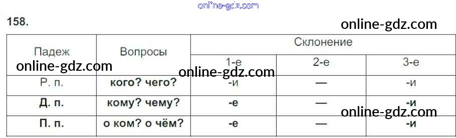 Готовые домашние задания по Русскому языку за 4 класс Рабочая тетрадь Канакина Школа России 2013 - Часть 1. Задания 158