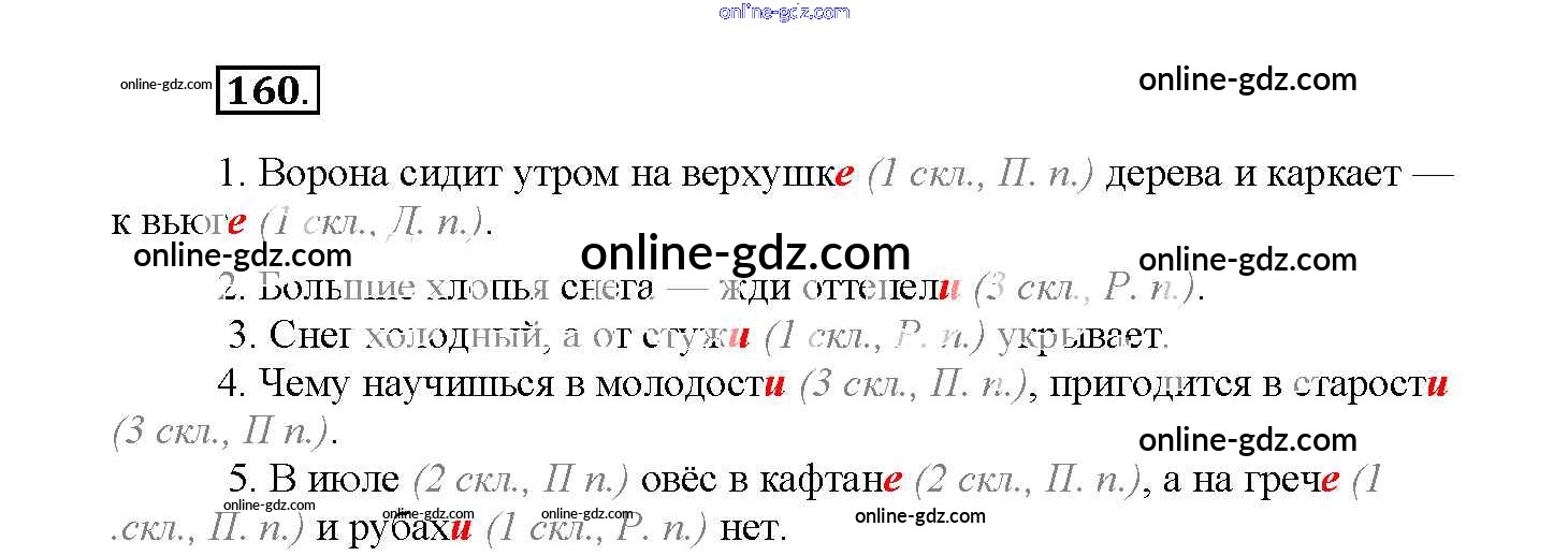Готовые домашние задания по Русскому языку за 4 класс Рабочая тетрадь Канакина Школа России 2013 - Часть 1. Задания 160