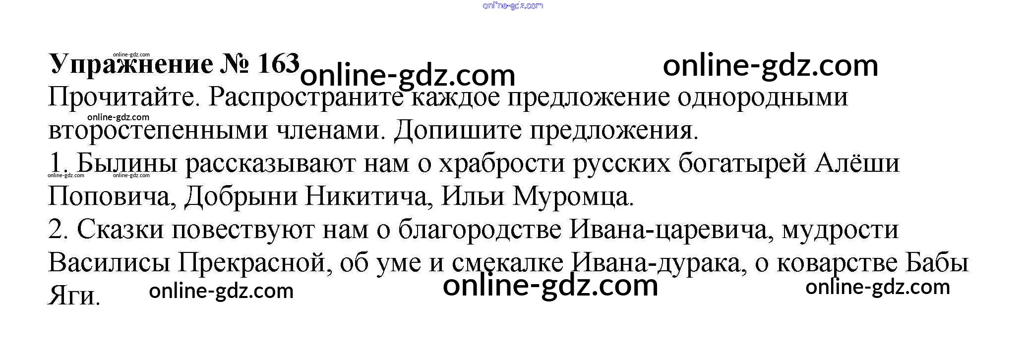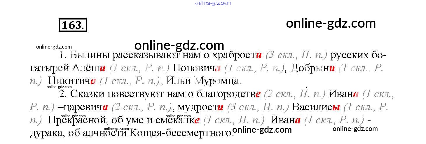 Готовые домашние задания по Русскому языку за 4 класс Рабочая тетрадь Канакина Школа России 2013 - Часть 1. Задания 163