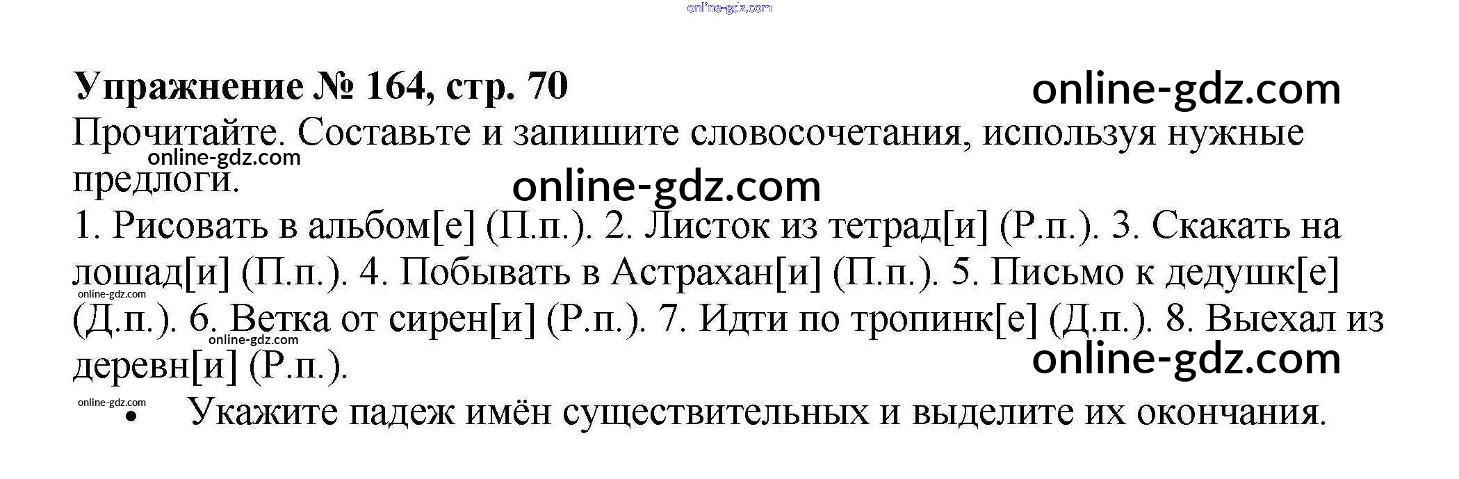 Готовые домашние задания по Русскому языку за 4 класс Рабочая тетрадь Канакина Школа России 2013 - Часть 1. Задания 164