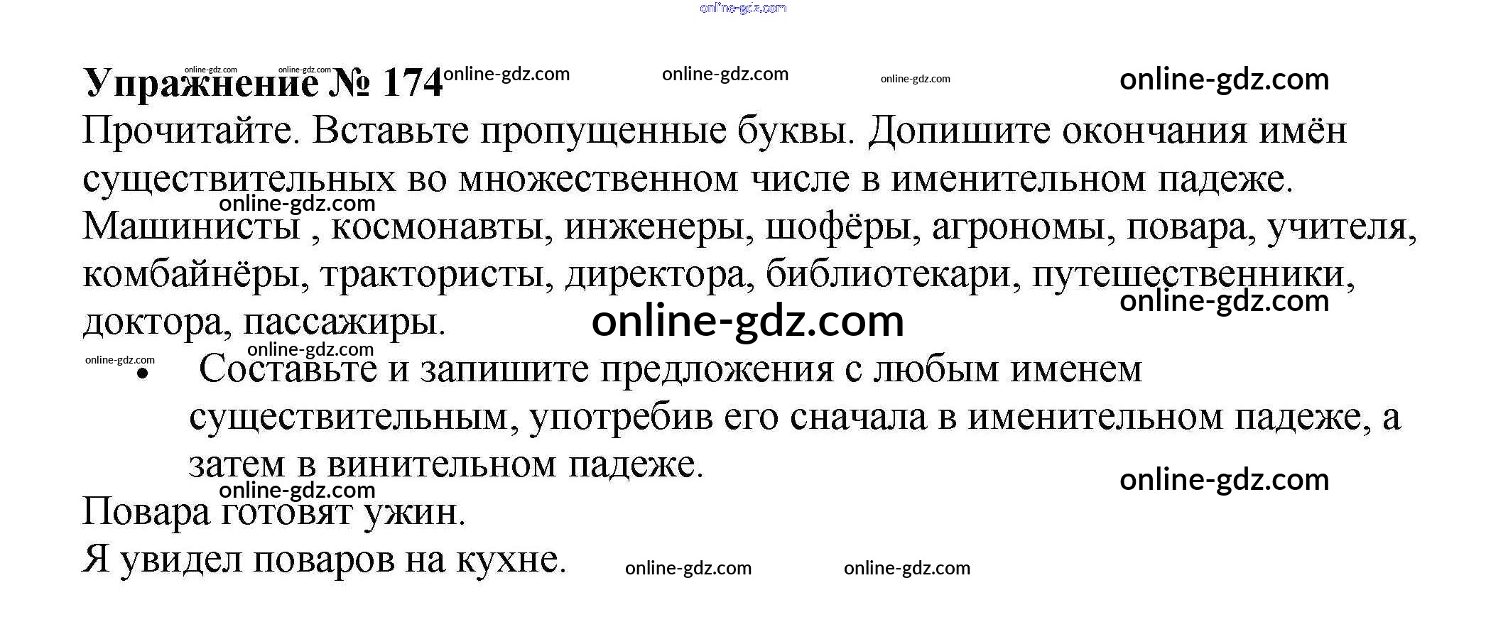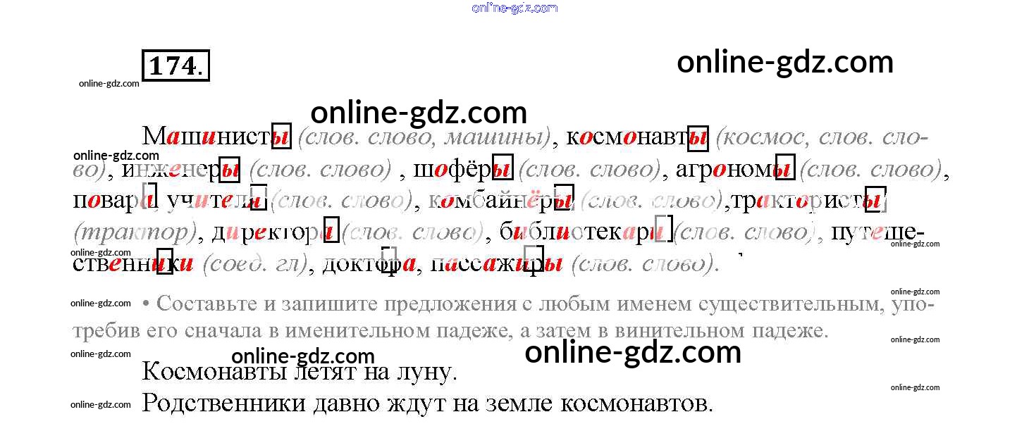 Готовые домашние задания по Русскому языку за 4 класс Рабочая тетрадь Канакина Школа России 2013 - Часть 1. Задания 174