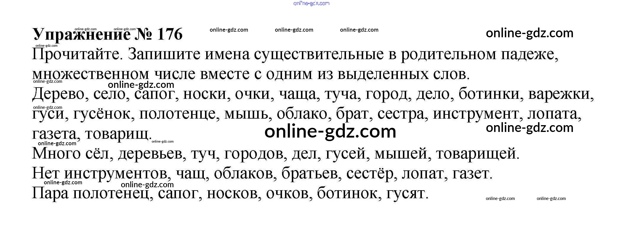 Готовые домашние задания по Русскому языку за 4 класс Рабочая тетрадь Канакина Школа России 2013 - Часть 1. Задания 176