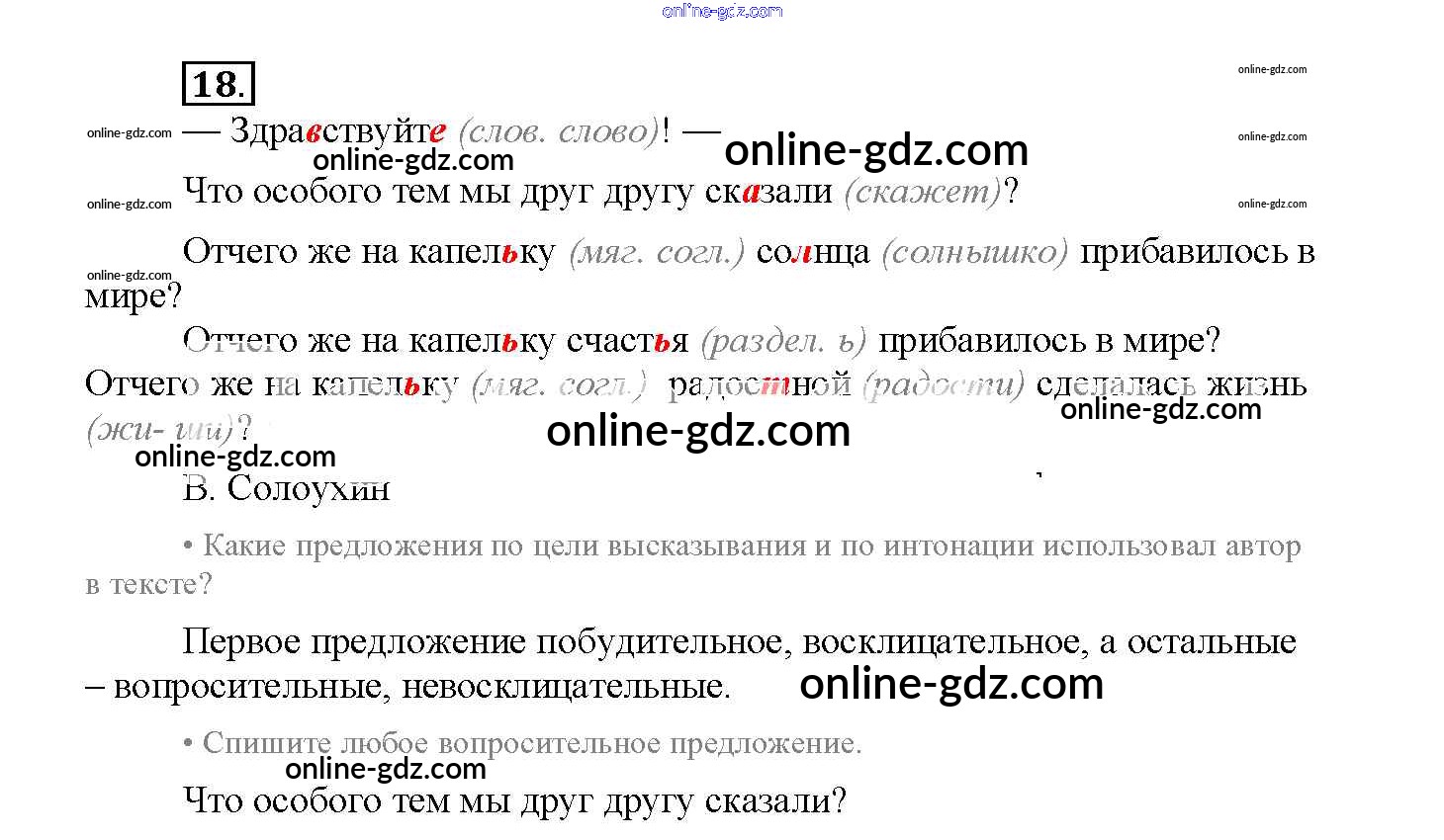 Готовые домашние задания по Русскому языку за 4 класс Рабочая тетрадь Канакина Школа России 2013 - Часть 1. Задания 18