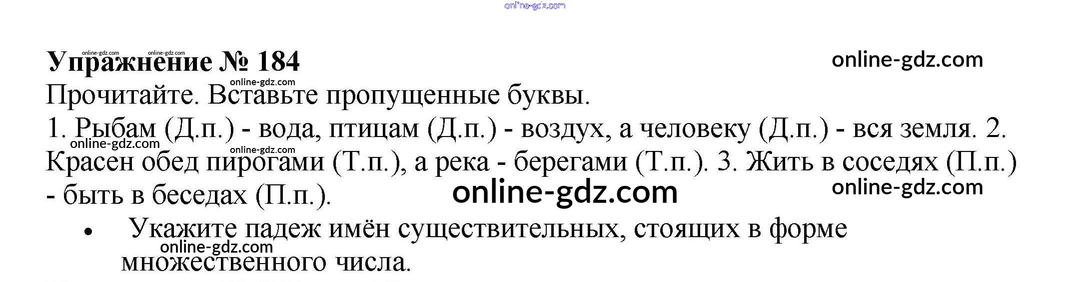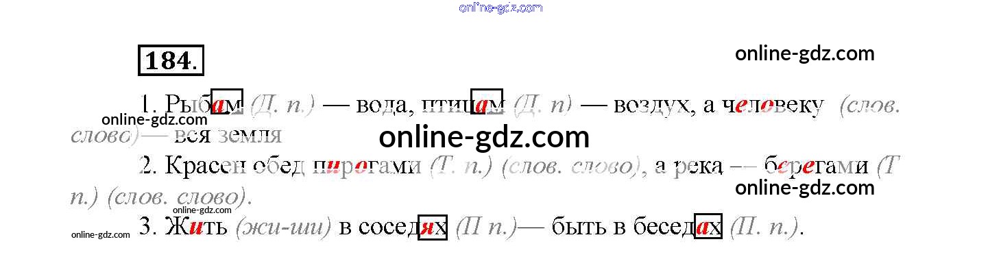 Готовые домашние задания по Русскому языку за 4 класс Рабочая тетрадь Канакина Школа России 2013 - Часть 1. Задания 184