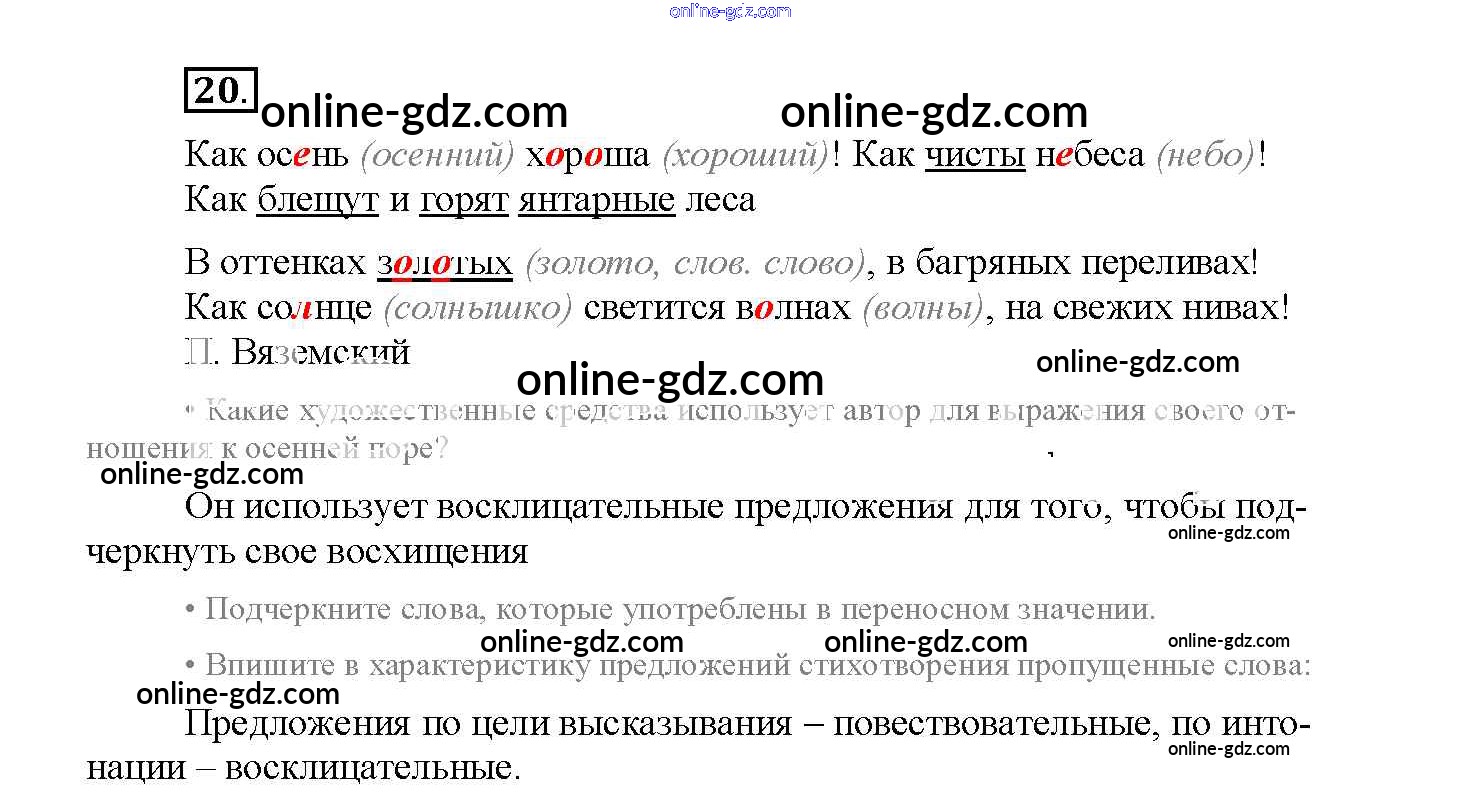Готовые домашние задания по Русскому языку за 4 класс Рабочая тетрадь Канакина Школа России 2013 - Часть 1. Задания 20