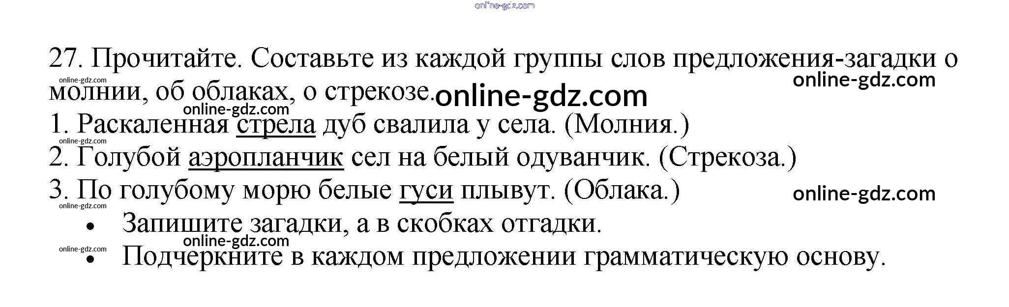 Готовые домашние задания по Русскому языку за 4 класс Рабочая тетрадь Канакина Школа России 2013 - Часть 1. Задания 27