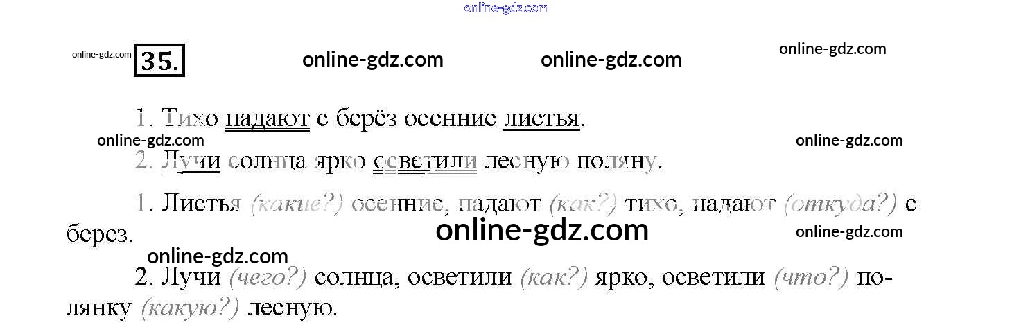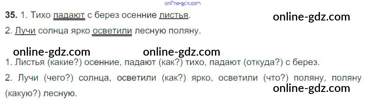 Готовые домашние задания по Русскому языку за 4 класс Рабочая тетрадь Канакина Школа России 2013 - Часть 1. Задания 35