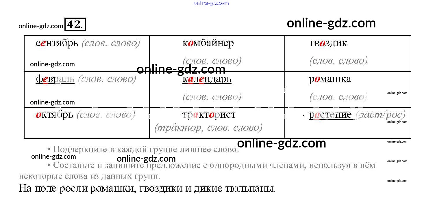 Готовые домашние задания по Русскому языку за 4 класс Рабочая тетрадь Канакина Школа России 2013 - Часть 1. Задания 42