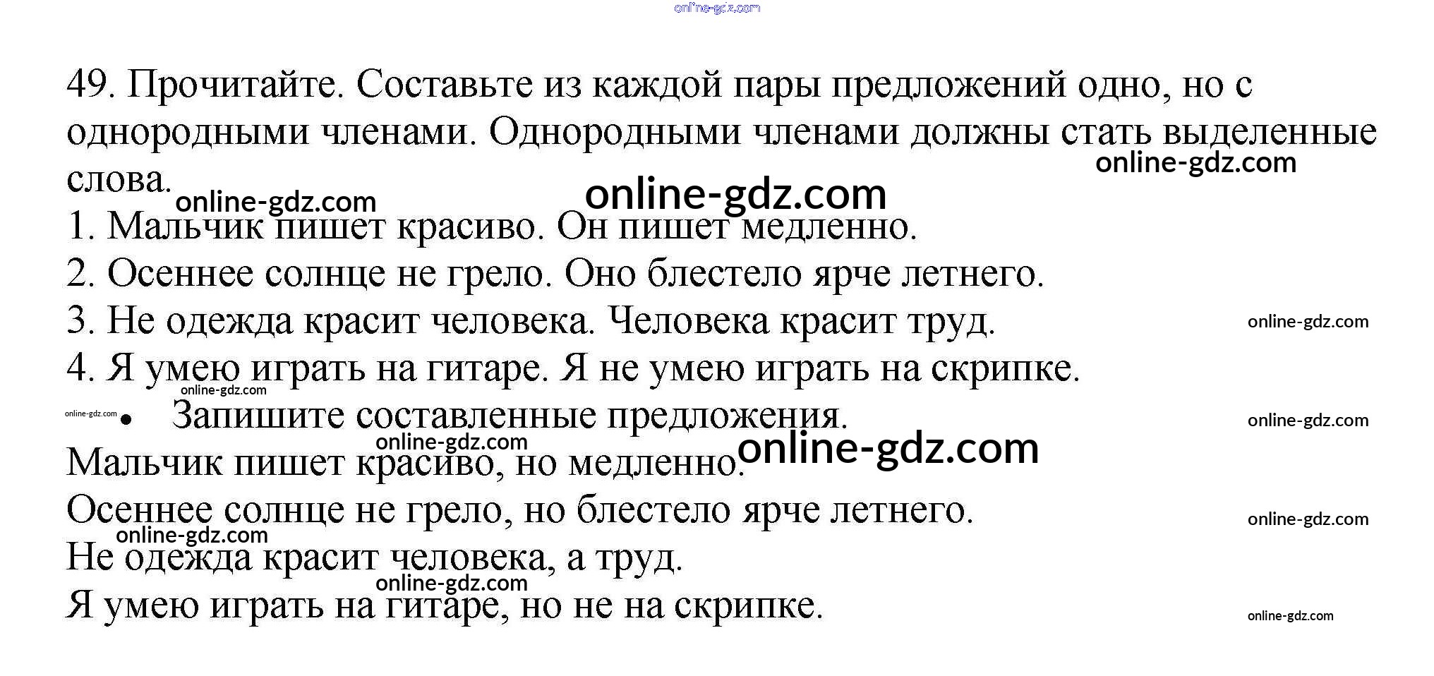 Готовые домашние задания по Русскому языку за 4 класс Рабочая тетрадь Канакина Школа России 2013 - Часть 1. Задания 49
