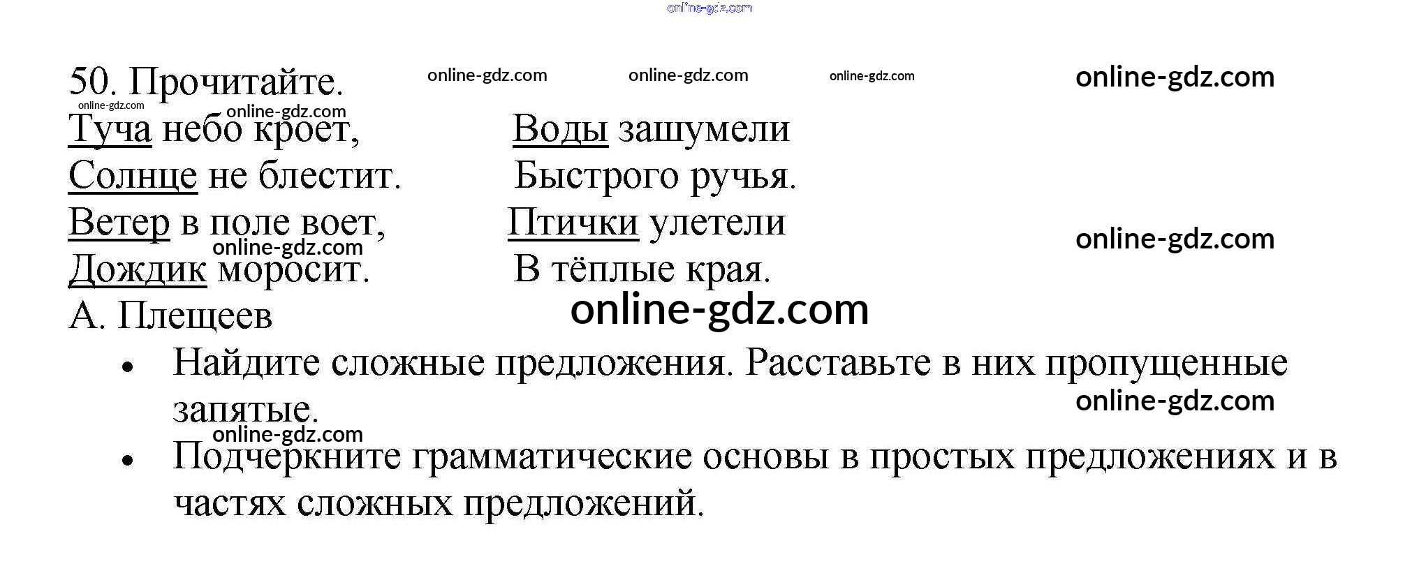 Готовые домашние задания по Русскому языку за 4 класс Рабочая тетрадь Канакина Школа России 2013 - Часть 1. Задания 50
