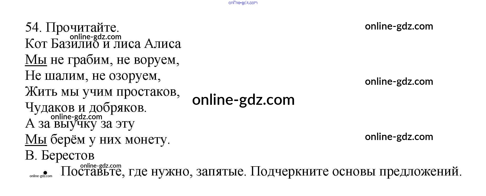 Готовые домашние задания по Русскому языку за 4 класс Рабочая тетрадь Канакина Школа России 2013 - Часть 1. Задания 54