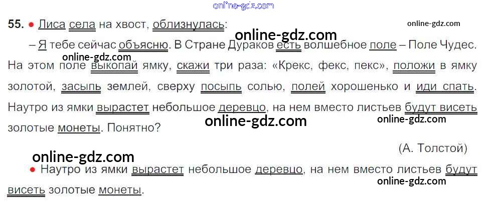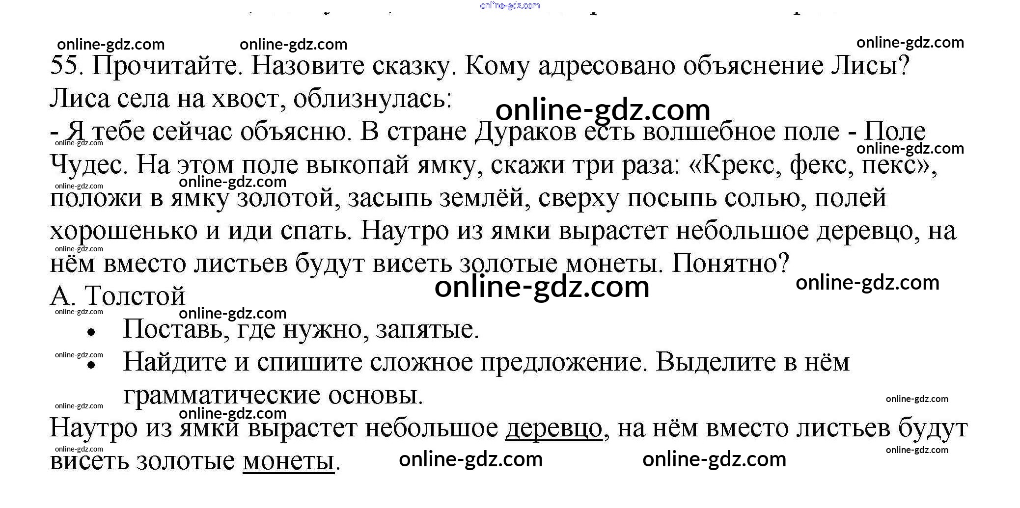 Готовые домашние задания по Русскому языку за 4 класс Рабочая тетрадь Канакина Школа России 2013 - Часть 1. Задания 55