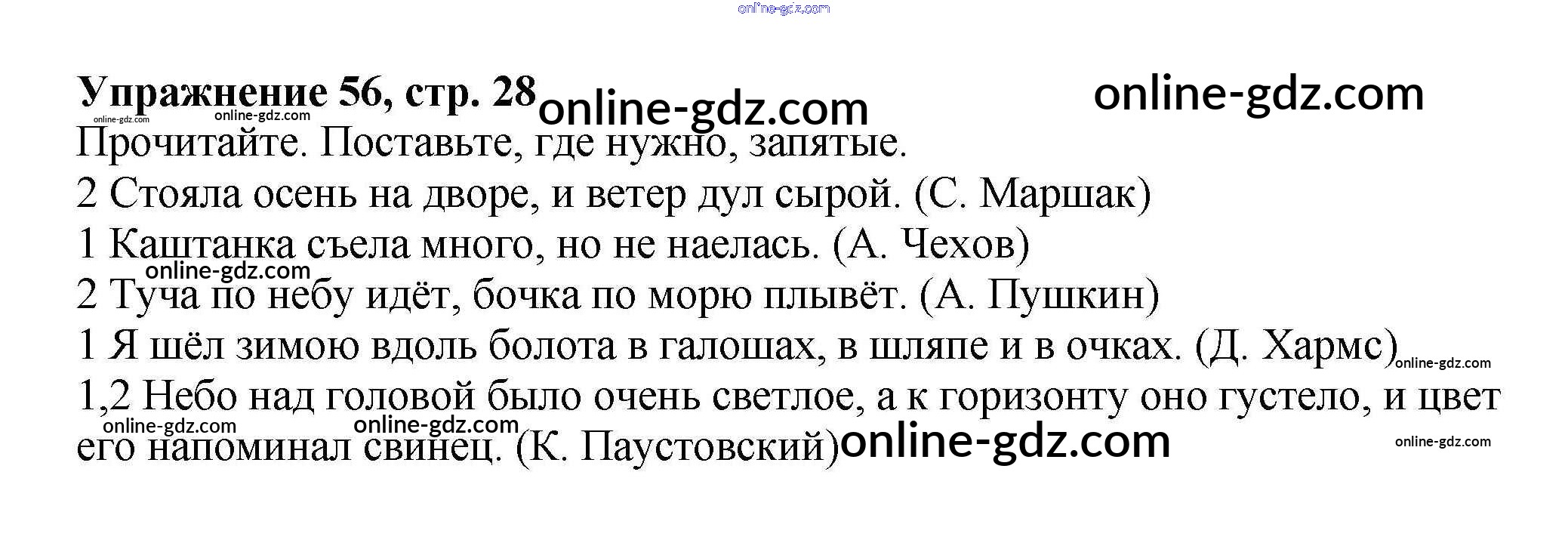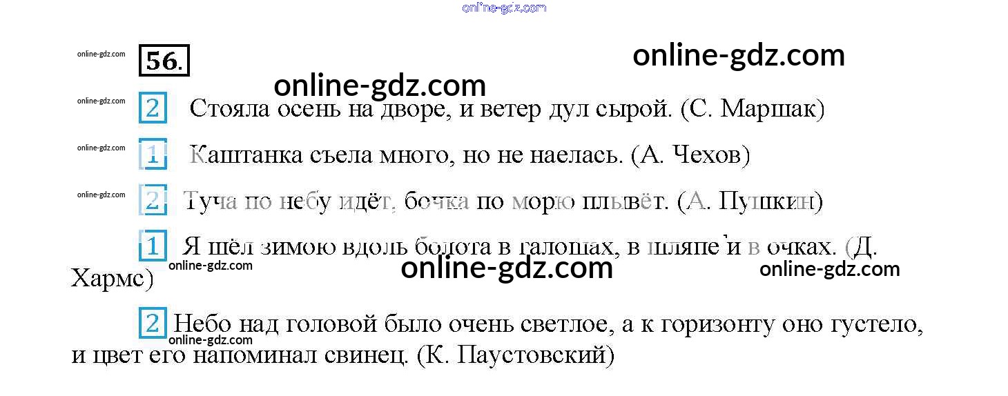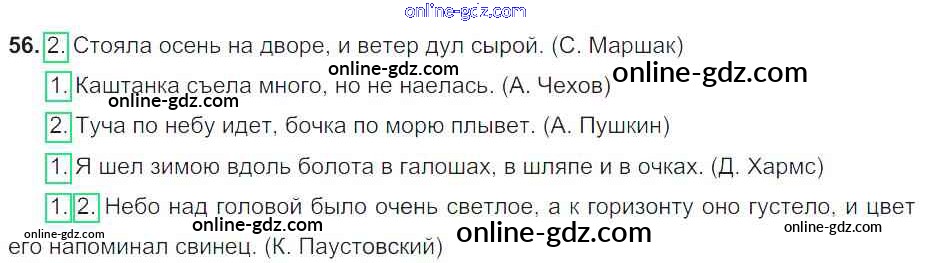 Готовые домашние задания по Русскому языку за 4 класс Рабочая тетрадь Канакина Школа России 2013 - Часть 1. Задания 56