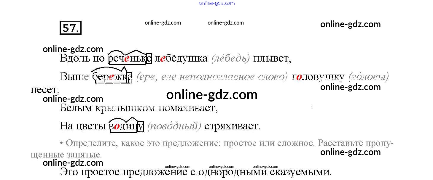 Готовые домашние задания по Русскому языку за 4 класс Рабочая тетрадь Канакина Школа России 2013 - Часть 1. Задания 57