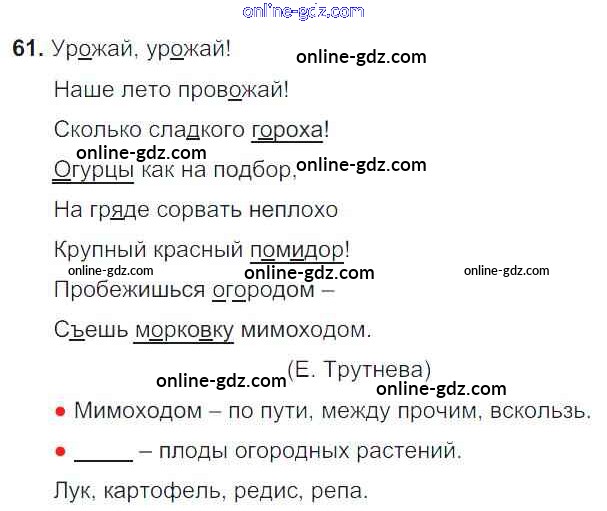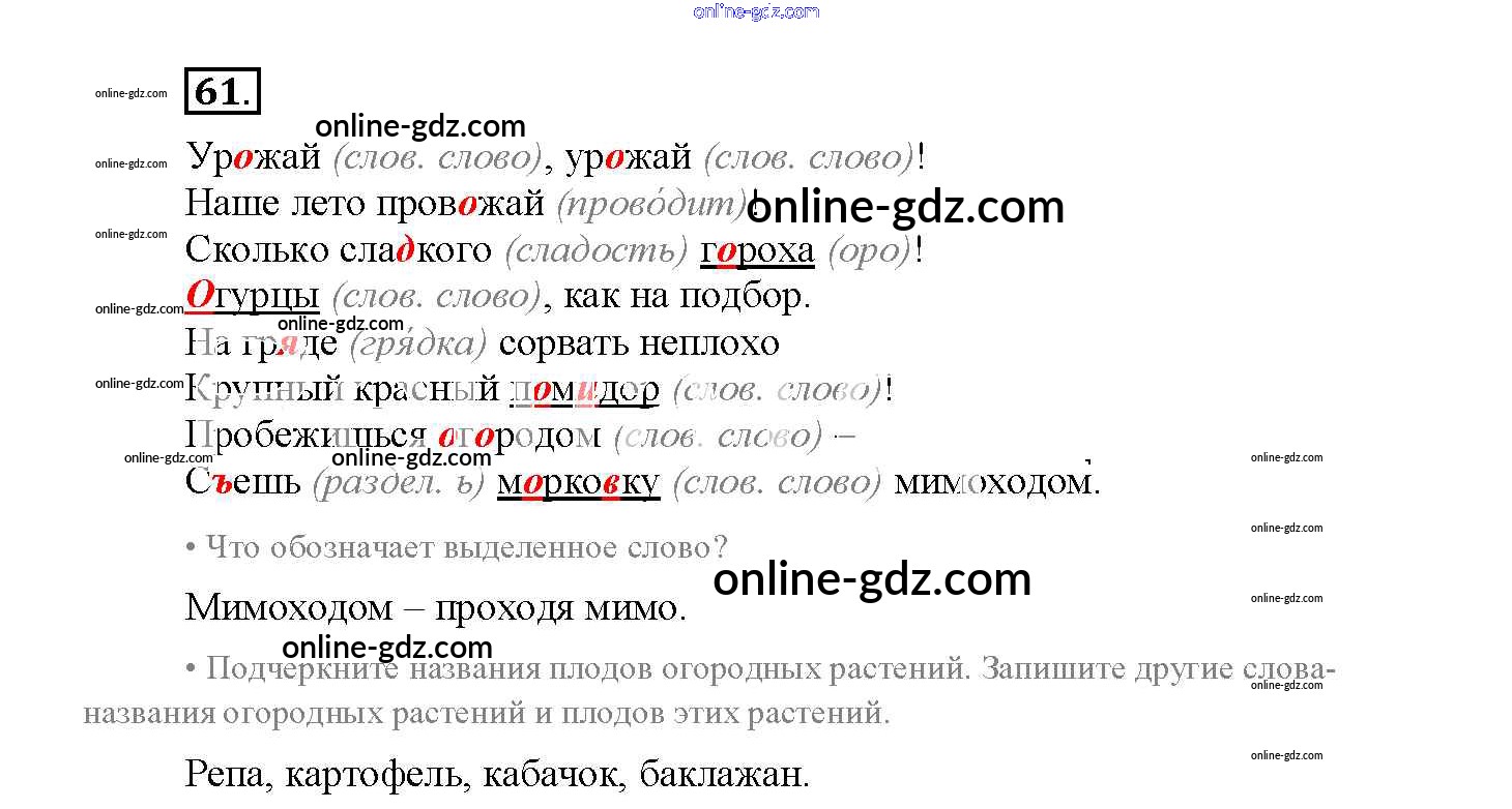 Готовые домашние задания по Русскому языку за 4 класс Рабочая тетрадь Канакина Школа России 2013 - Часть 1. Задания 61