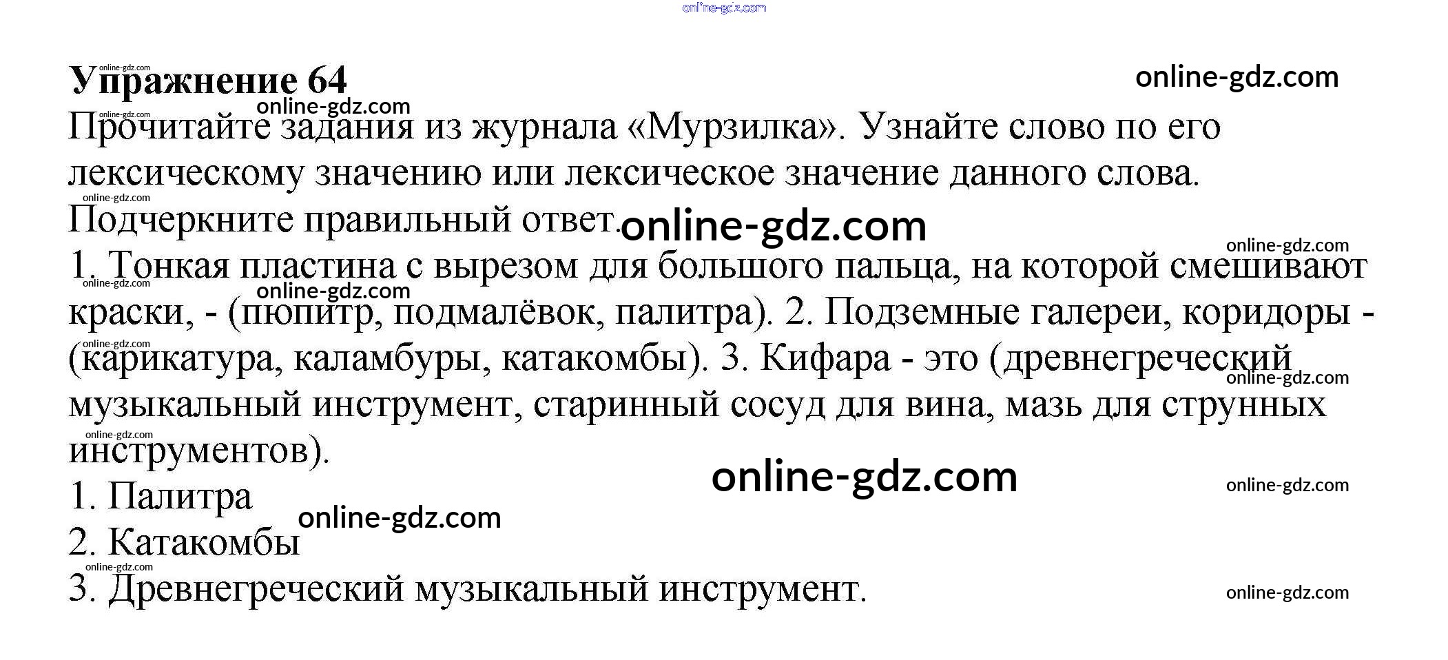Готовые домашние задания по Русскому языку за 4 класс Рабочая тетрадь Канакина Школа России 2013 - Часть 1. Задания 64