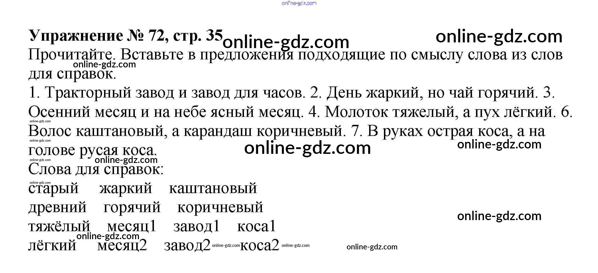 Готовые домашние задания по Русскому языку за 4 класс Рабочая тетрадь Канакина Школа России 2013 - Часть 1. Задания 72