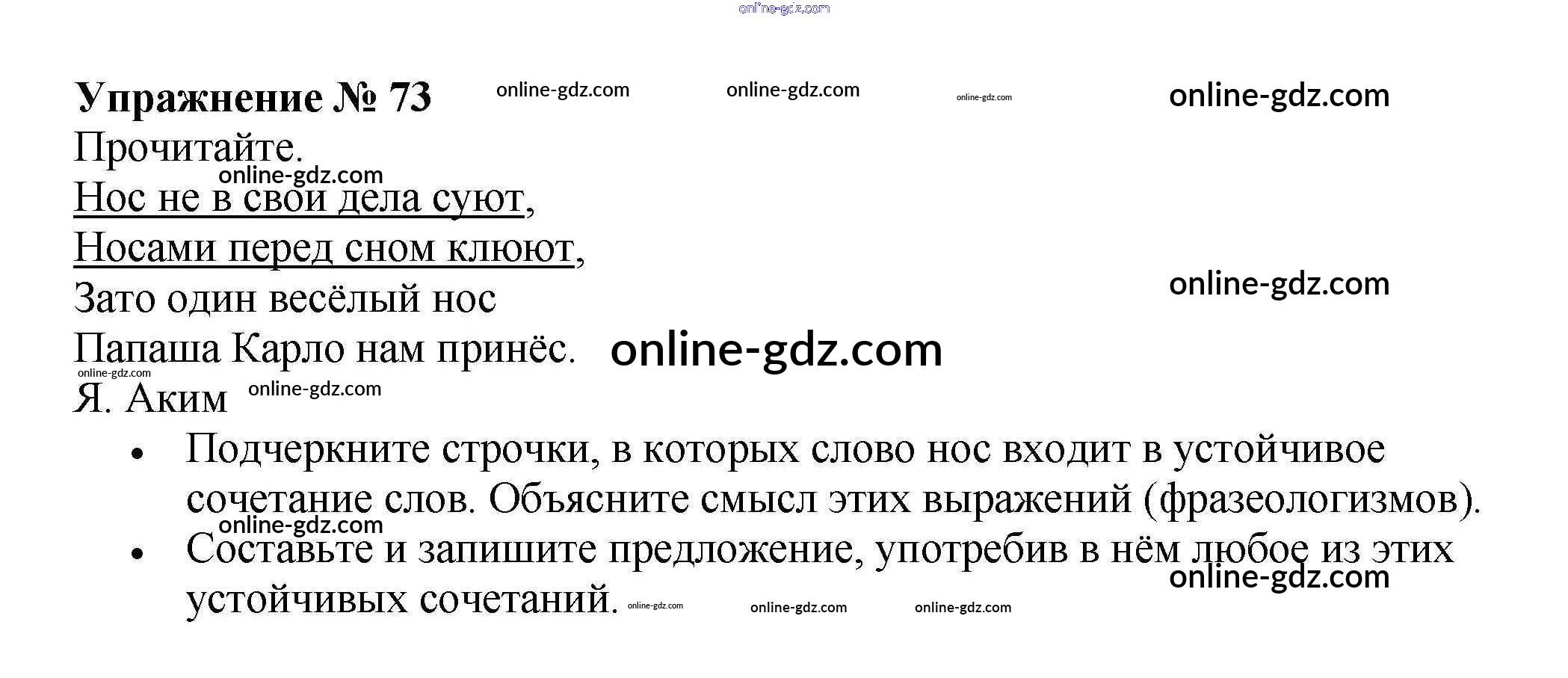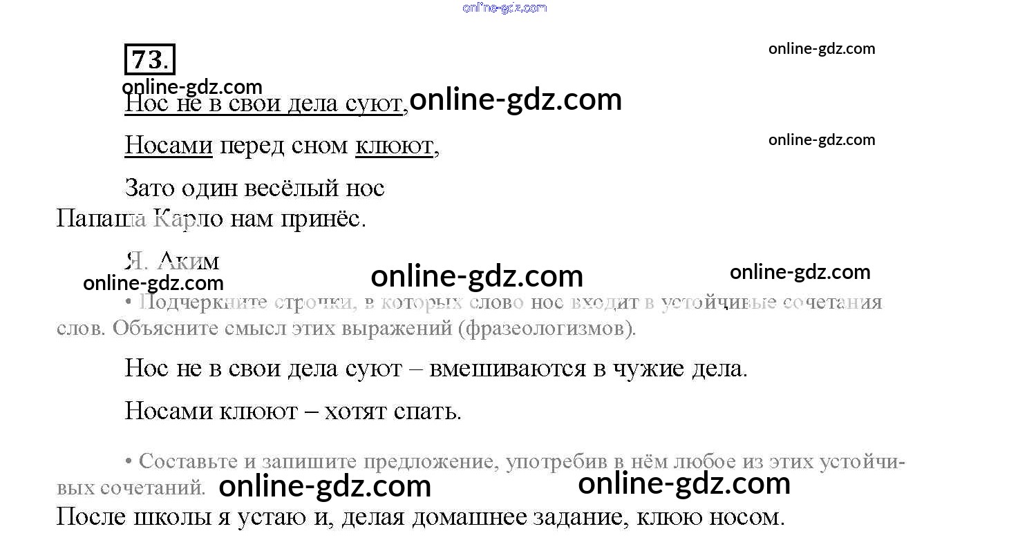 Готовые домашние задания по Русскому языку за 4 класс Рабочая тетрадь Канакина Школа России 2013 - Часть 1. Задания 73