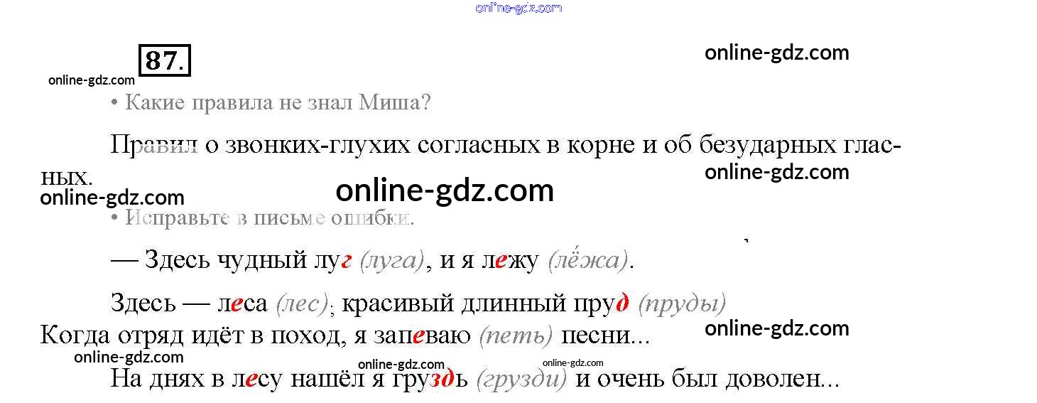 Готовые домашние задания по Русскому языку за 4 класс Рабочая тетрадь Канакина Школа России 2013 - Часть 1. Задания 87