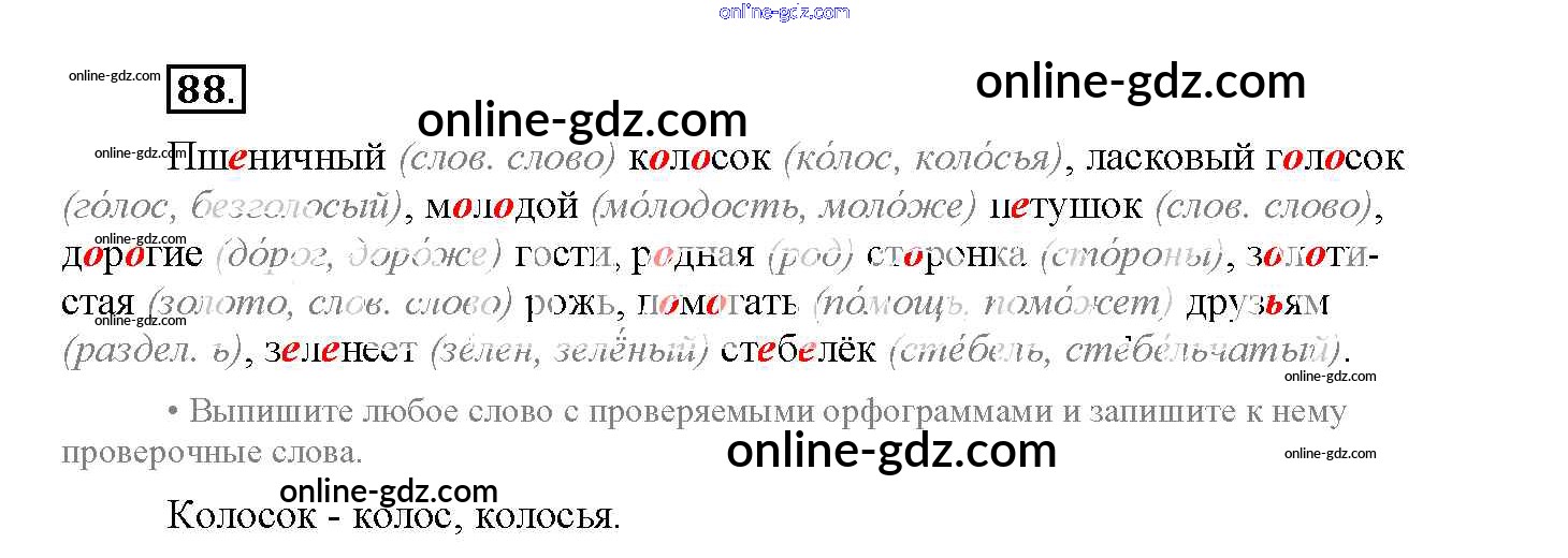 Готовые домашние задания по Русскому языку за 4 класс Рабочая тетрадь Канакина Школа России 2013 - Часть 1. Задания 88