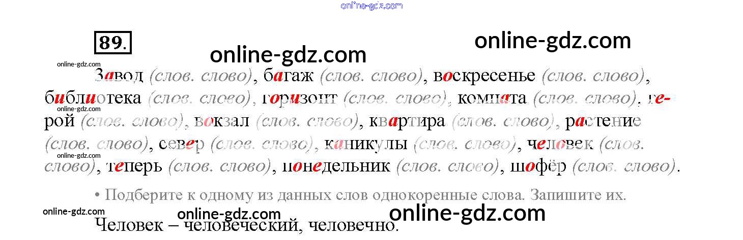 Готовые домашние задания по Русскому языку за 4 класс Рабочая тетрадь Канакина Школа России 2013 - Часть 1. Задания 89