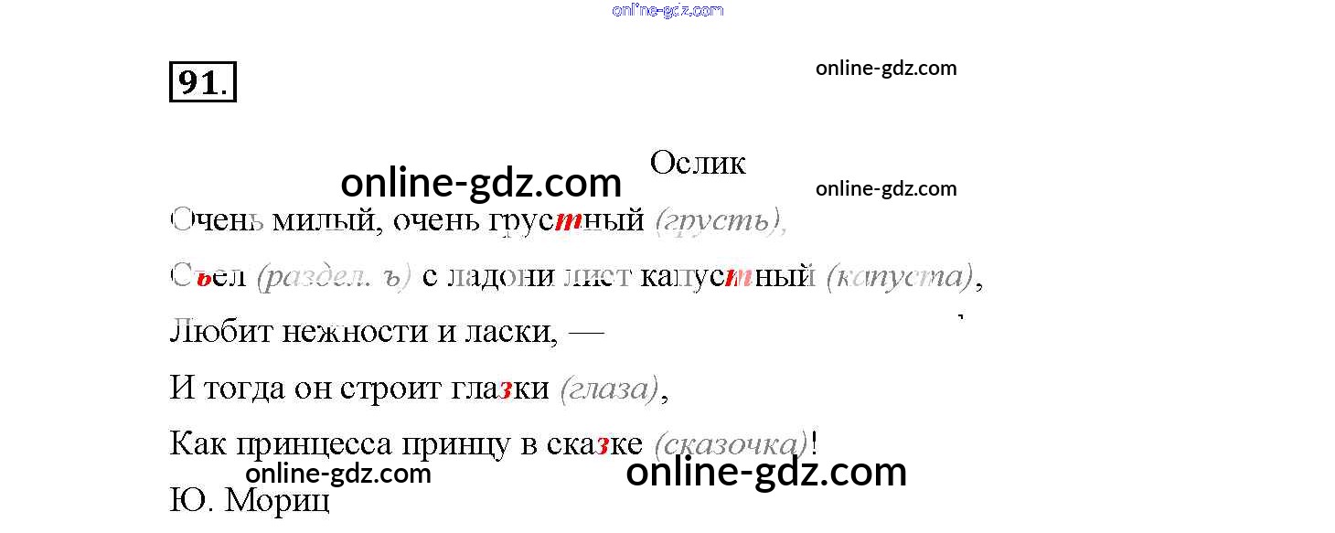 Готовые домашние задания по Русскому языку за 4 класс Рабочая тетрадь Канакина Школа России 2013 - Часть 1. Задания 91