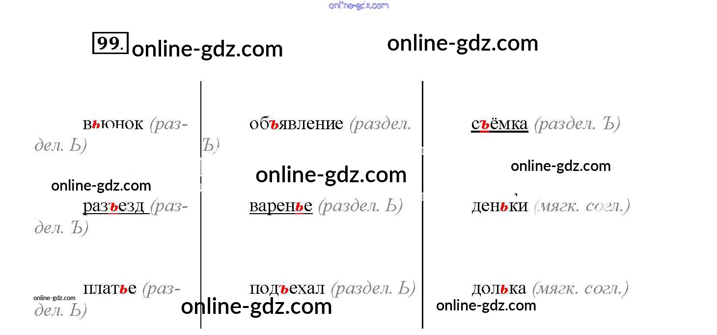 Готовые домашние задания по Русскому языку за 4 класс Рабочая тетрадь Канакина Школа России 2013 - Часть 1. Задания 99