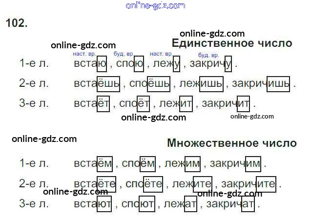 Готовые домашние задания по Русскому языку за 4 класс Рабочая тетрадь Канакина Школа России 2013 - Часть 2. Задания 102