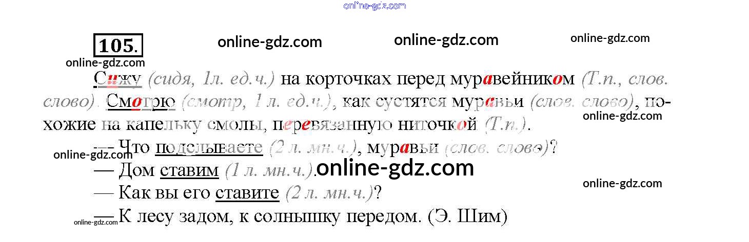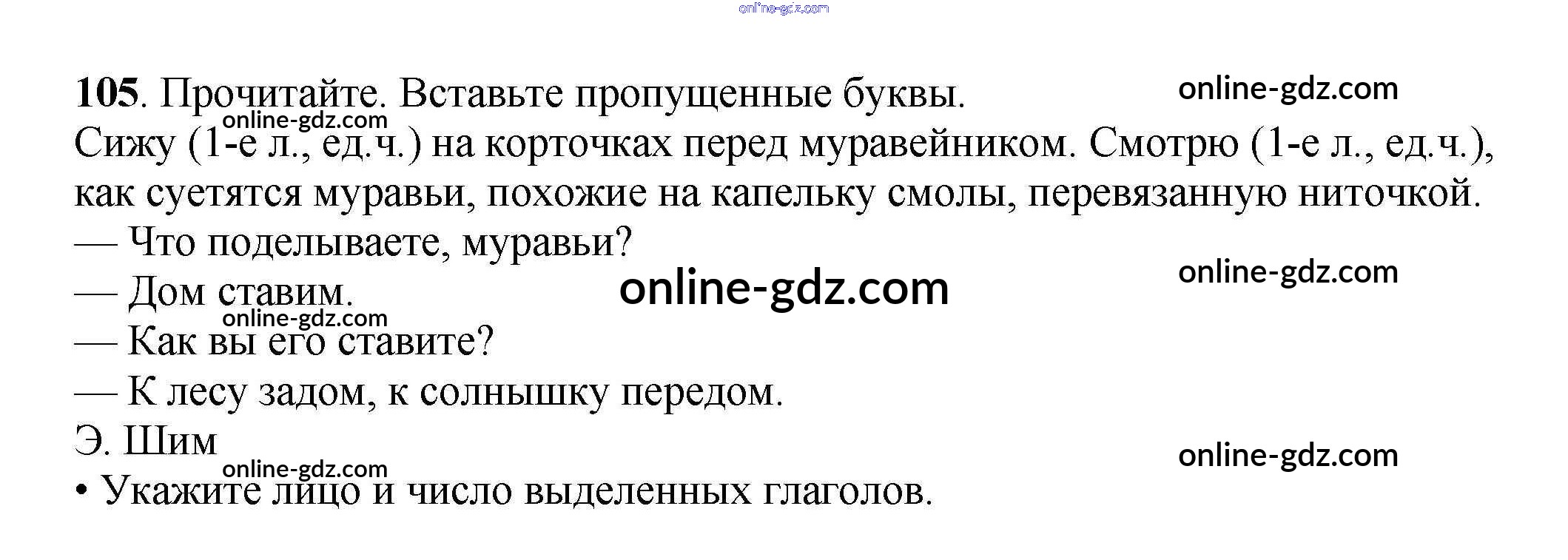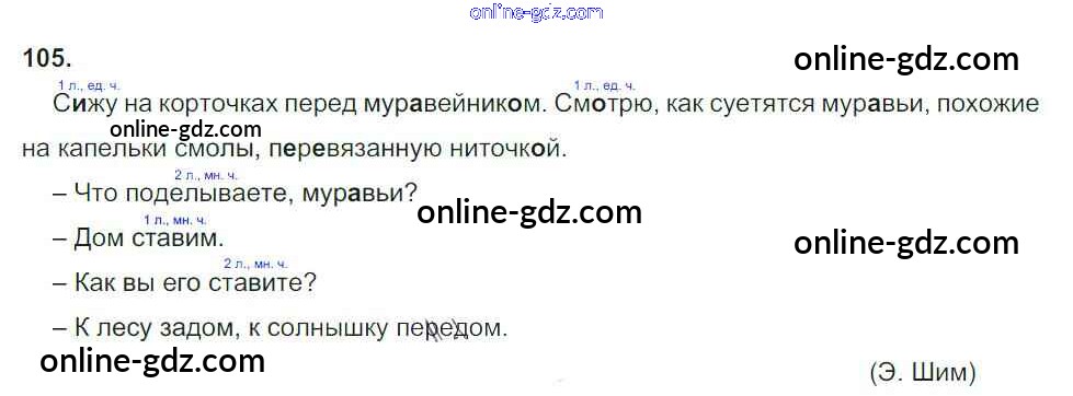 Готовые домашние задания по Русскому языку за 4 класс Рабочая тетрадь Канакина Школа России 2013 - Часть 2. Задания 105
