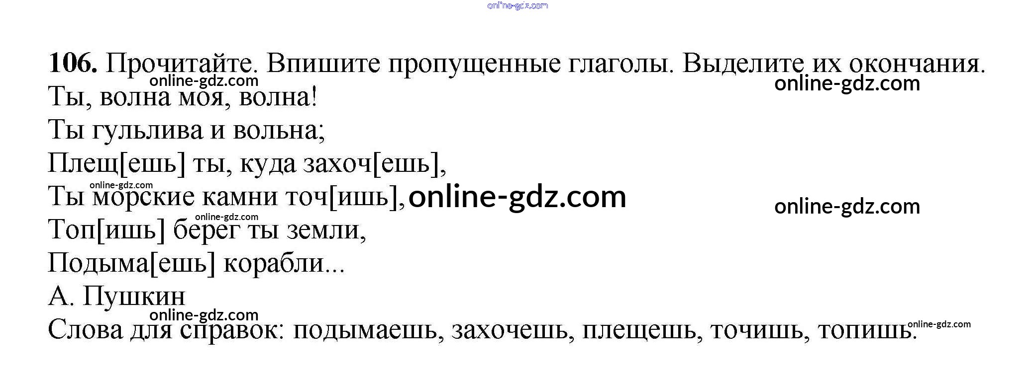 Готовые домашние задания по Русскому языку за 4 класс Рабочая тетрадь Канакина Школа России 2013 - Часть 2. Задания 106
