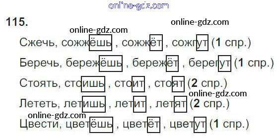 Готовые домашние задания по Русскому языку за 4 класс Рабочая тетрадь Канакина Школа России 2013 - Часть 2. Задания 115
