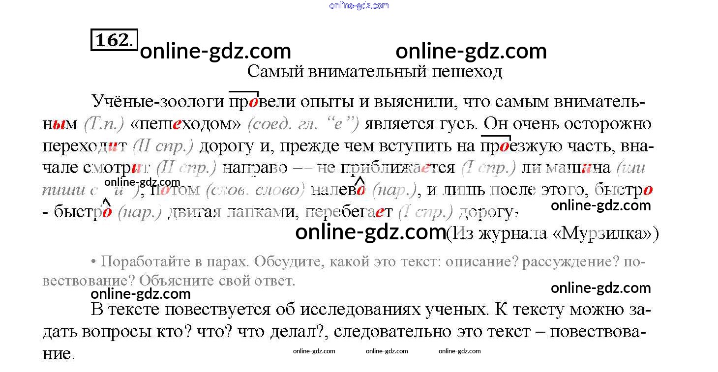 Готовые домашние задания по Русскому языку за 4 класс Рабочая тетрадь Канакина Школа России 2013 - Часть 2. Задания 162