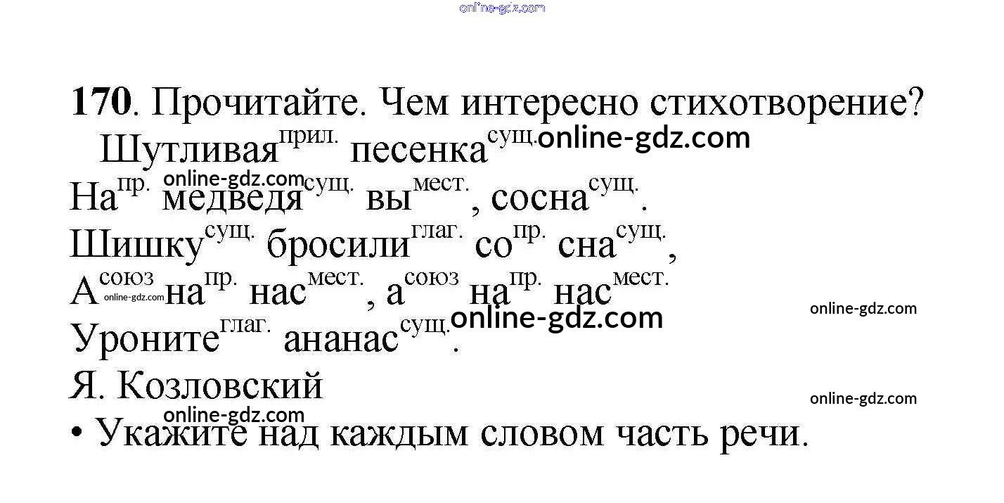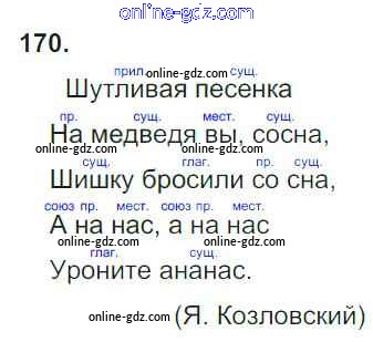 Готовые домашние задания по Русскому языку за 4 класс Рабочая тетрадь Канакина Школа России 2013 - Часть 2. Задания 170
