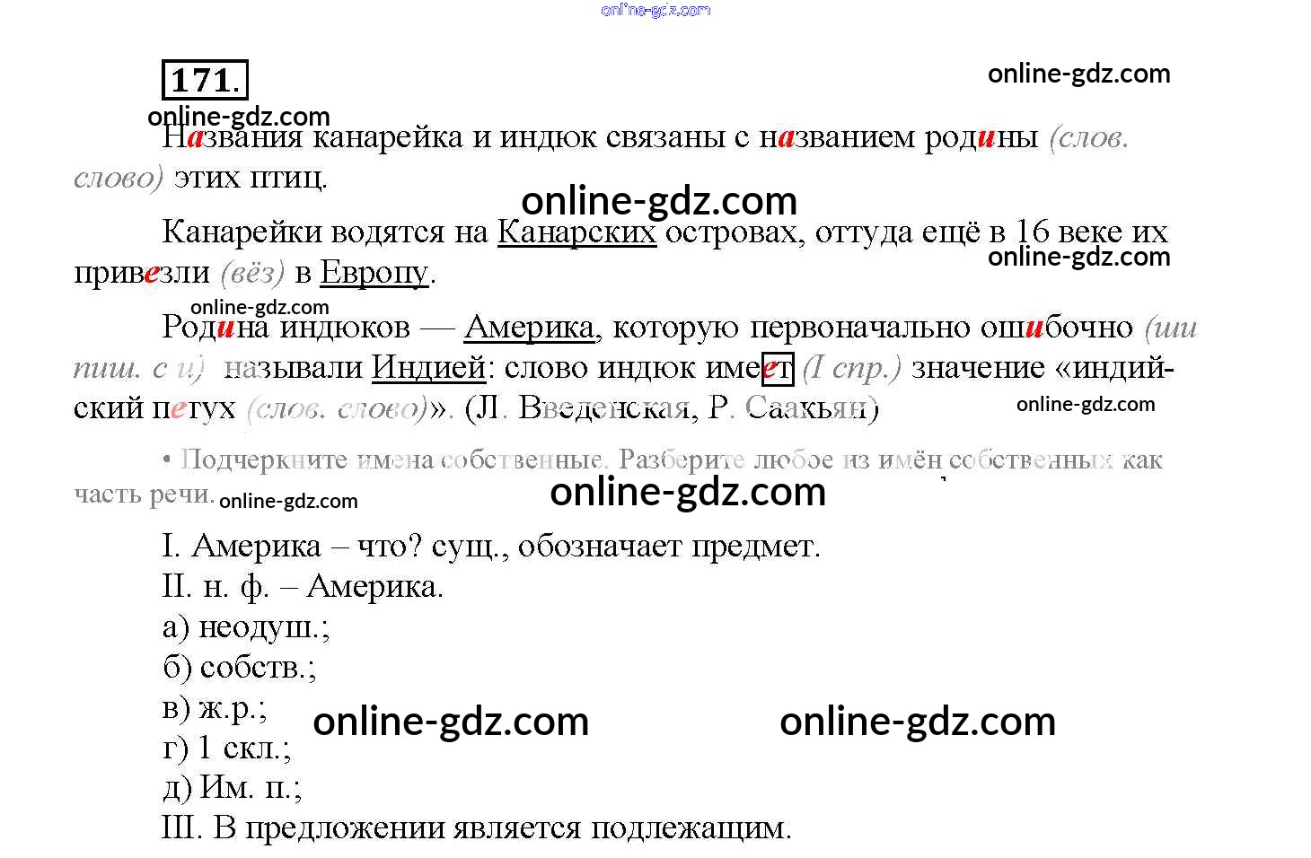 Готовые домашние задания по Русскому языку за 4 класс Рабочая тетрадь Канакина Школа России 2013 - Часть 2. Задания 171