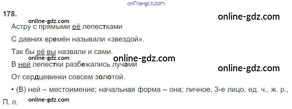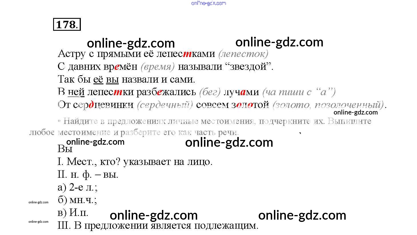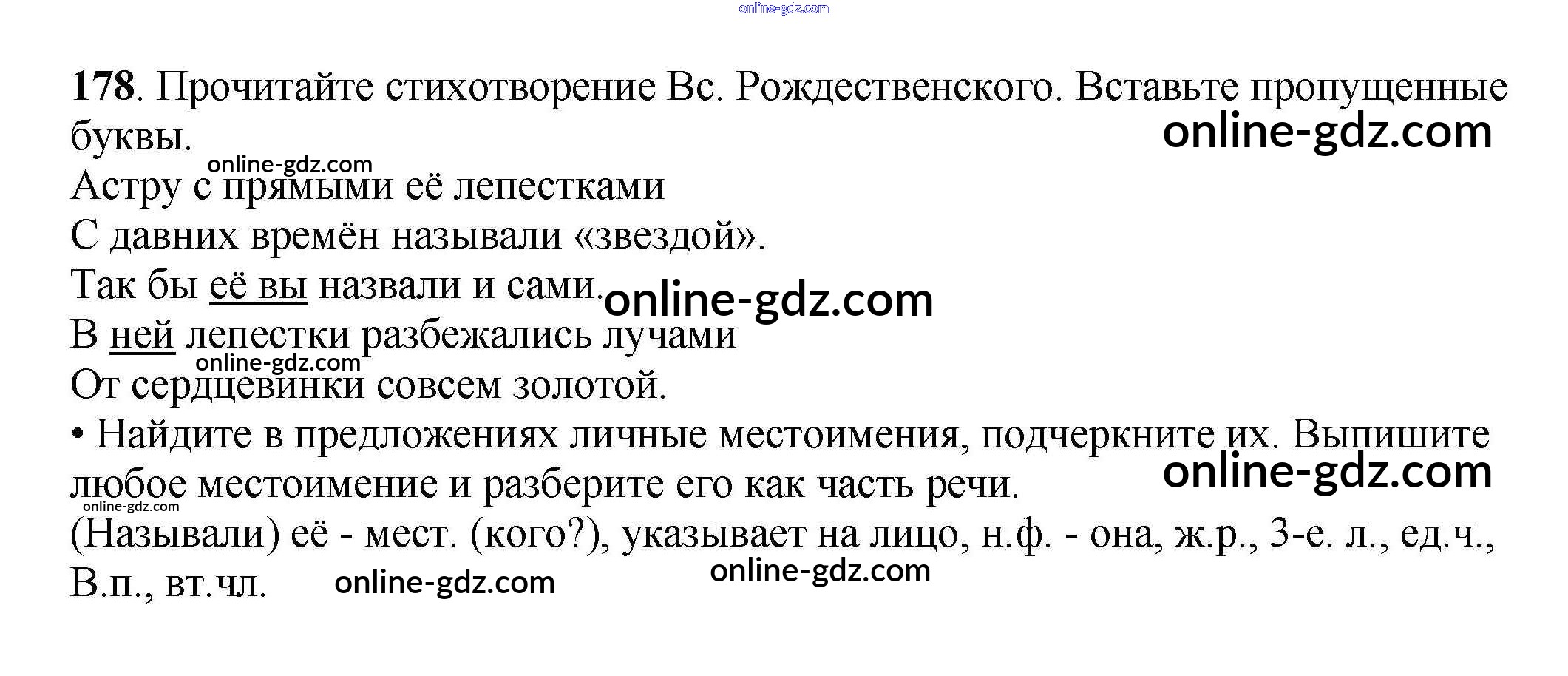 Готовые домашние задания по Русскому языку за 4 класс Рабочая тетрадь Канакина Школа России 2013 - Часть 2. Задания 178