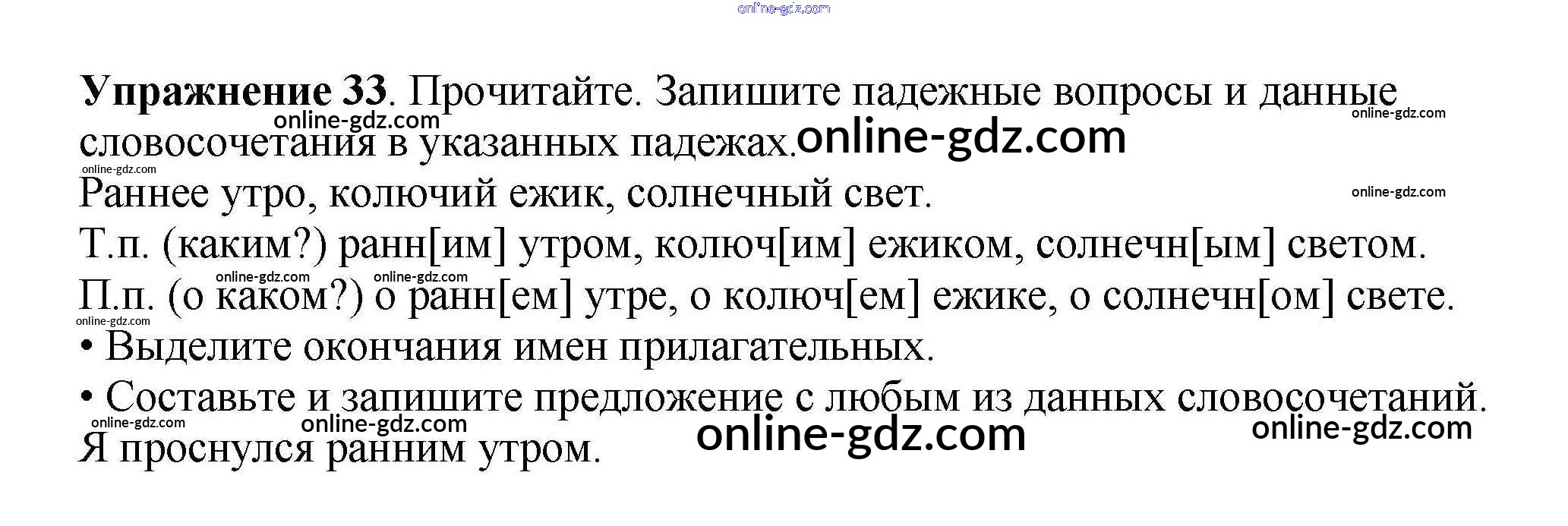 Готовые домашние задания по Русскому языку за 4 класс Рабочая тетрадь Канакина Школа России 2013 - Часть 2. Задания 33