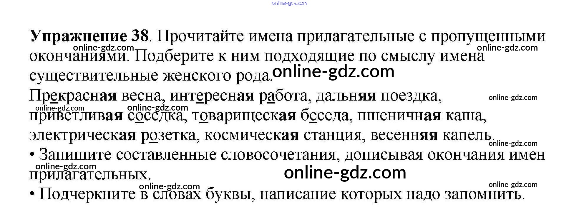 Готовые домашние задания по Русскому языку за 4 класс Рабочая тетрадь Канакина Школа России 2013 - Часть 2. Задания 38