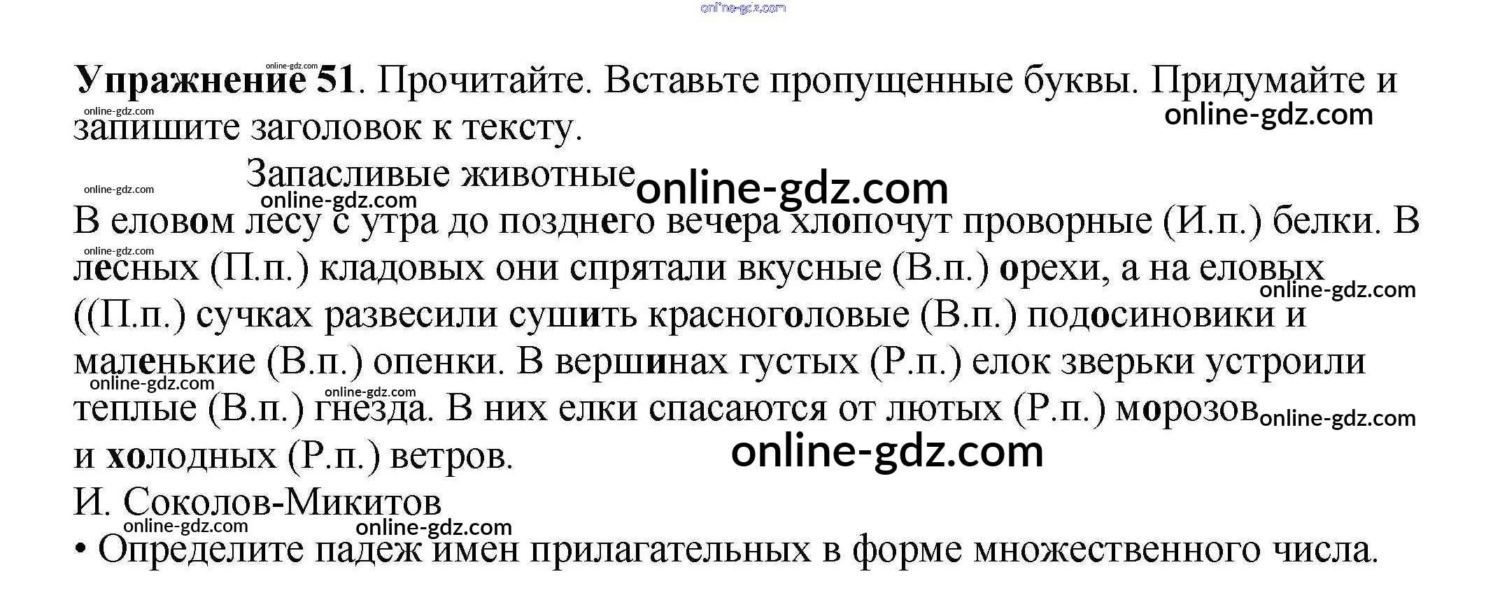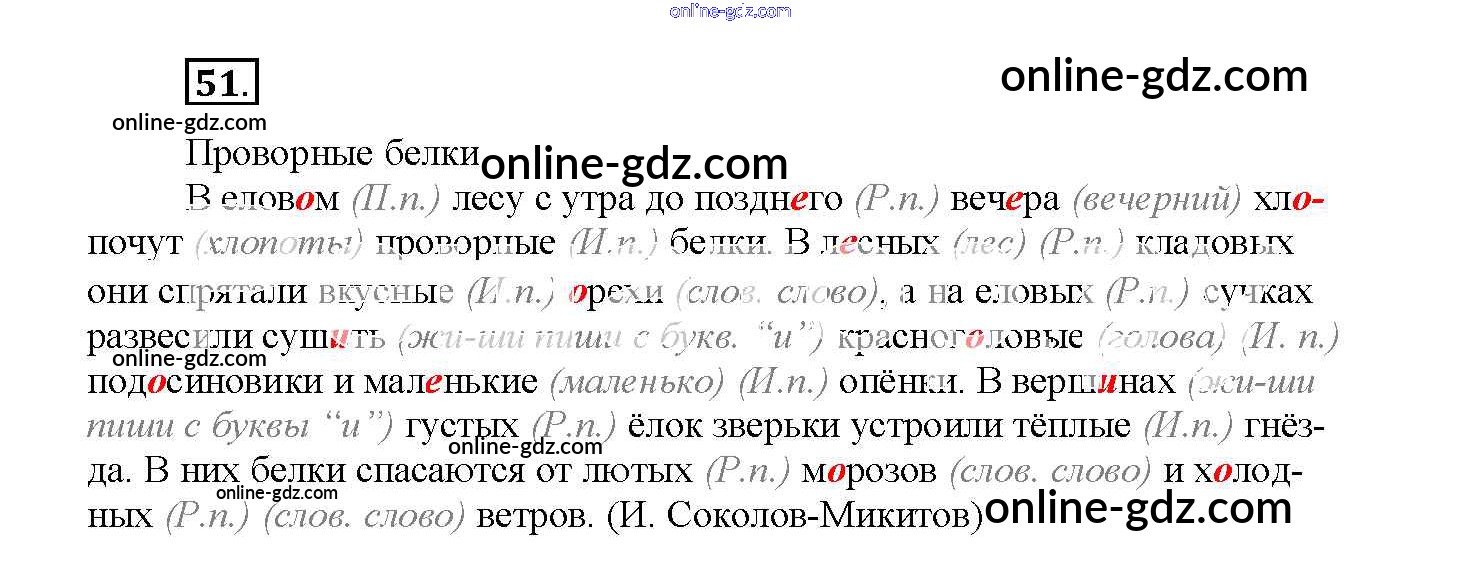 Готовые домашние задания по Русскому языку за 4 класс Рабочая тетрадь Канакина Школа России 2013 - Часть 2. Задания 51