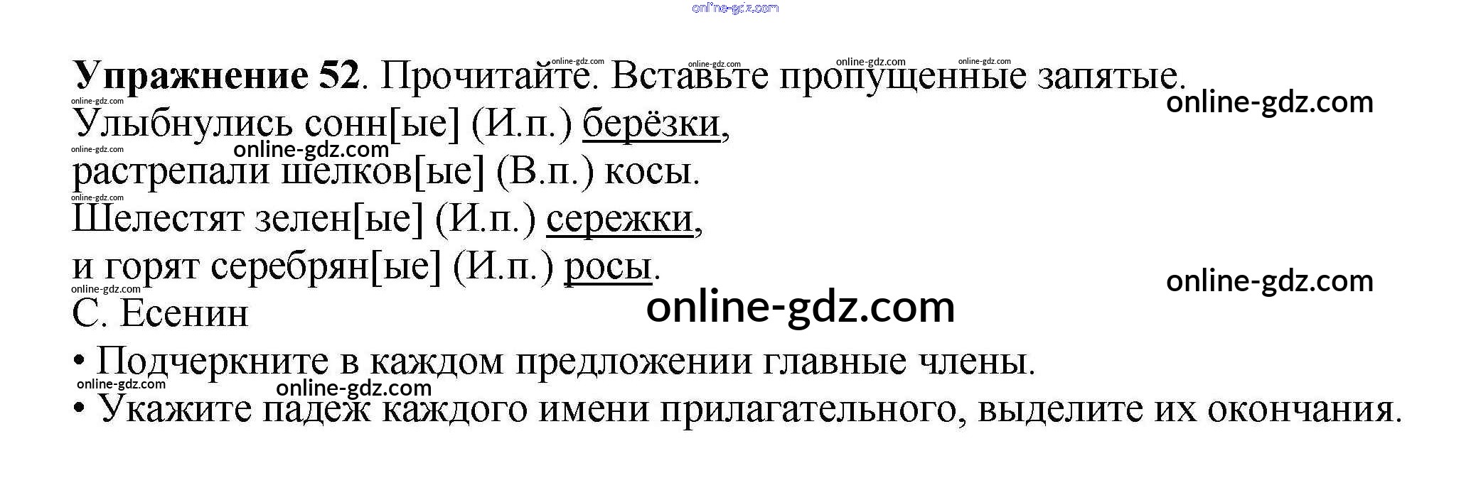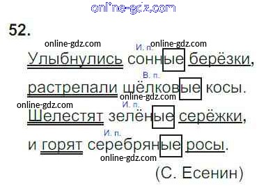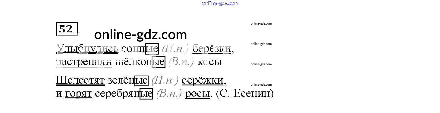 Готовые домашние задания по Русскому языку за 4 класс Рабочая тетрадь Канакина Школа России 2013 - Часть 2. Задания 52