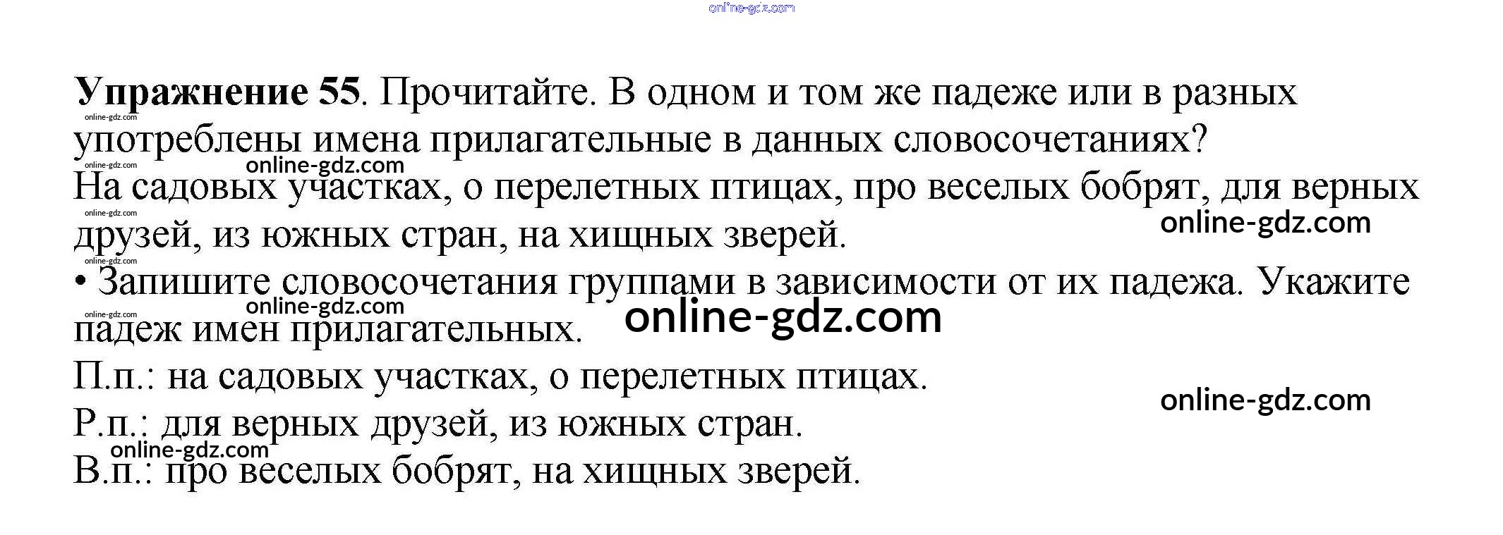 Готовые домашние задания по Русскому языку за 4 класс Рабочая тетрадь Канакина Школа России 2013 - Часть 2. Задания 55