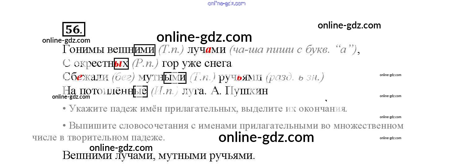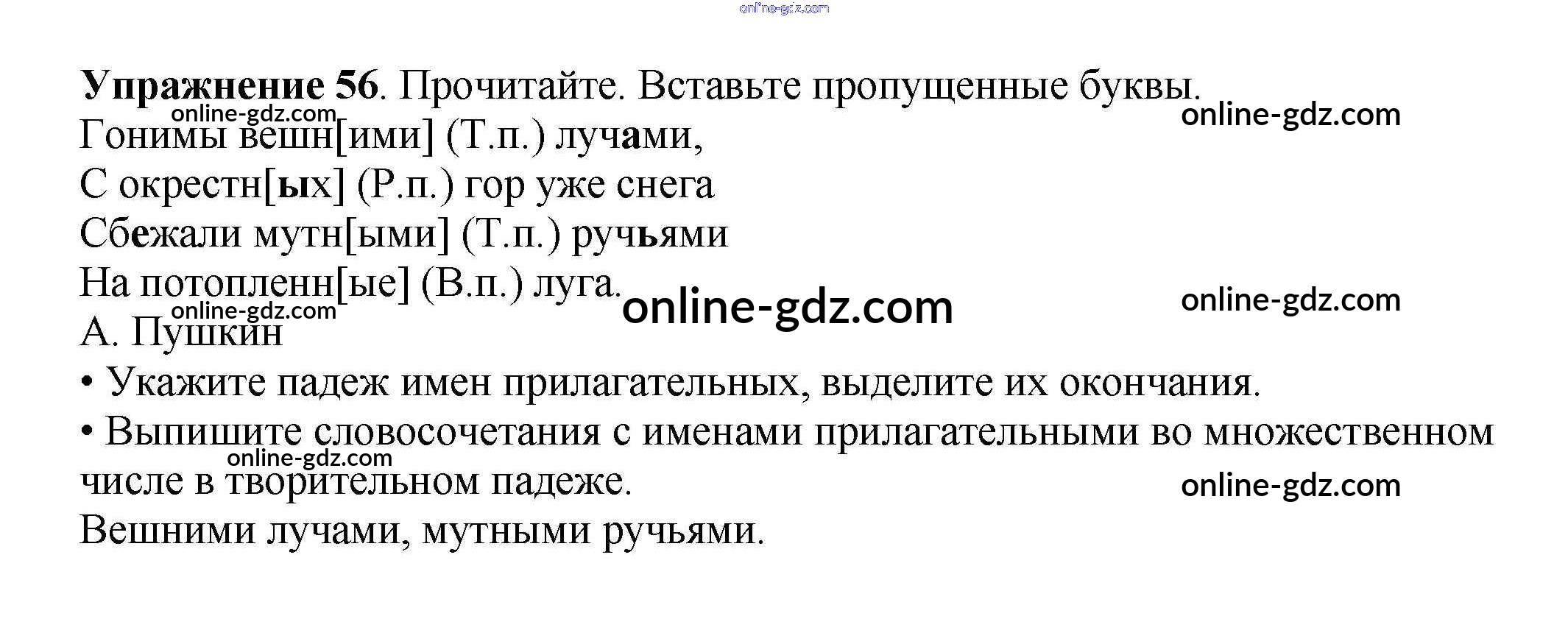 Готовые домашние задания по Русскому языку за 4 класс Рабочая тетрадь Канакина Школа России 2013 - Часть 2. Задания 56