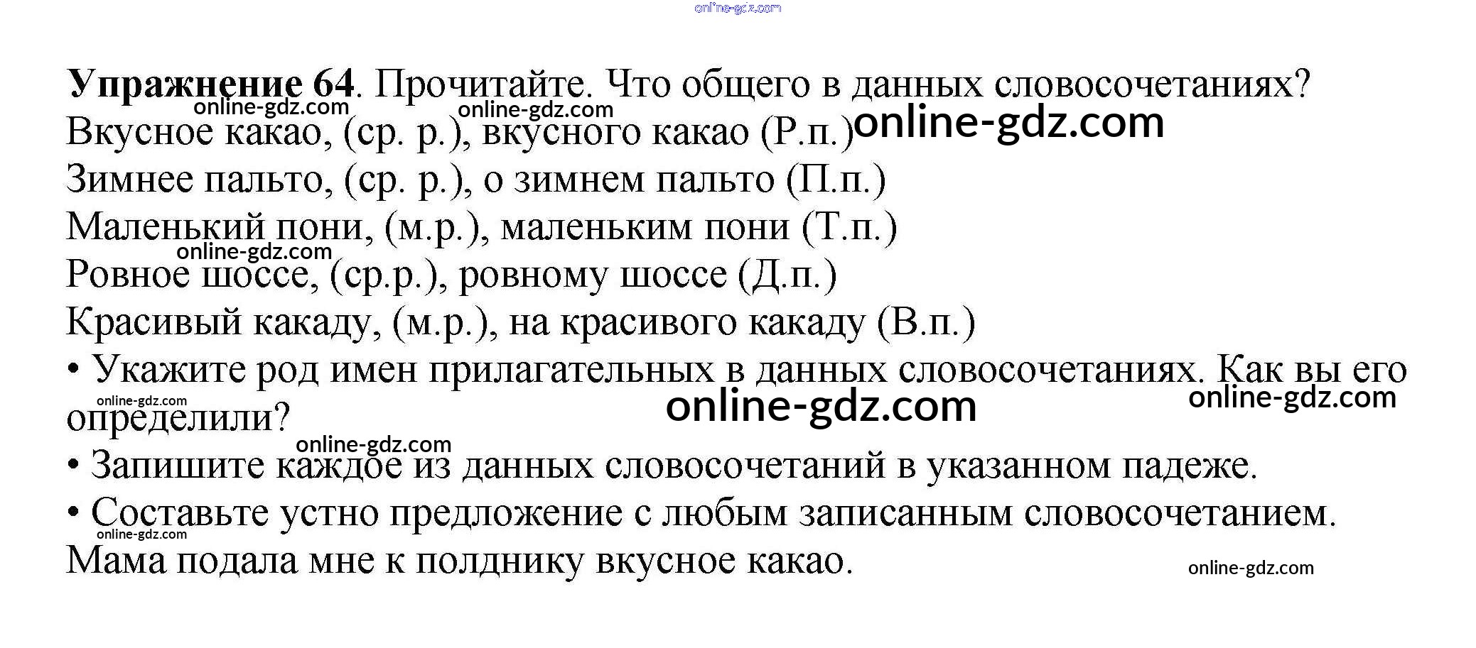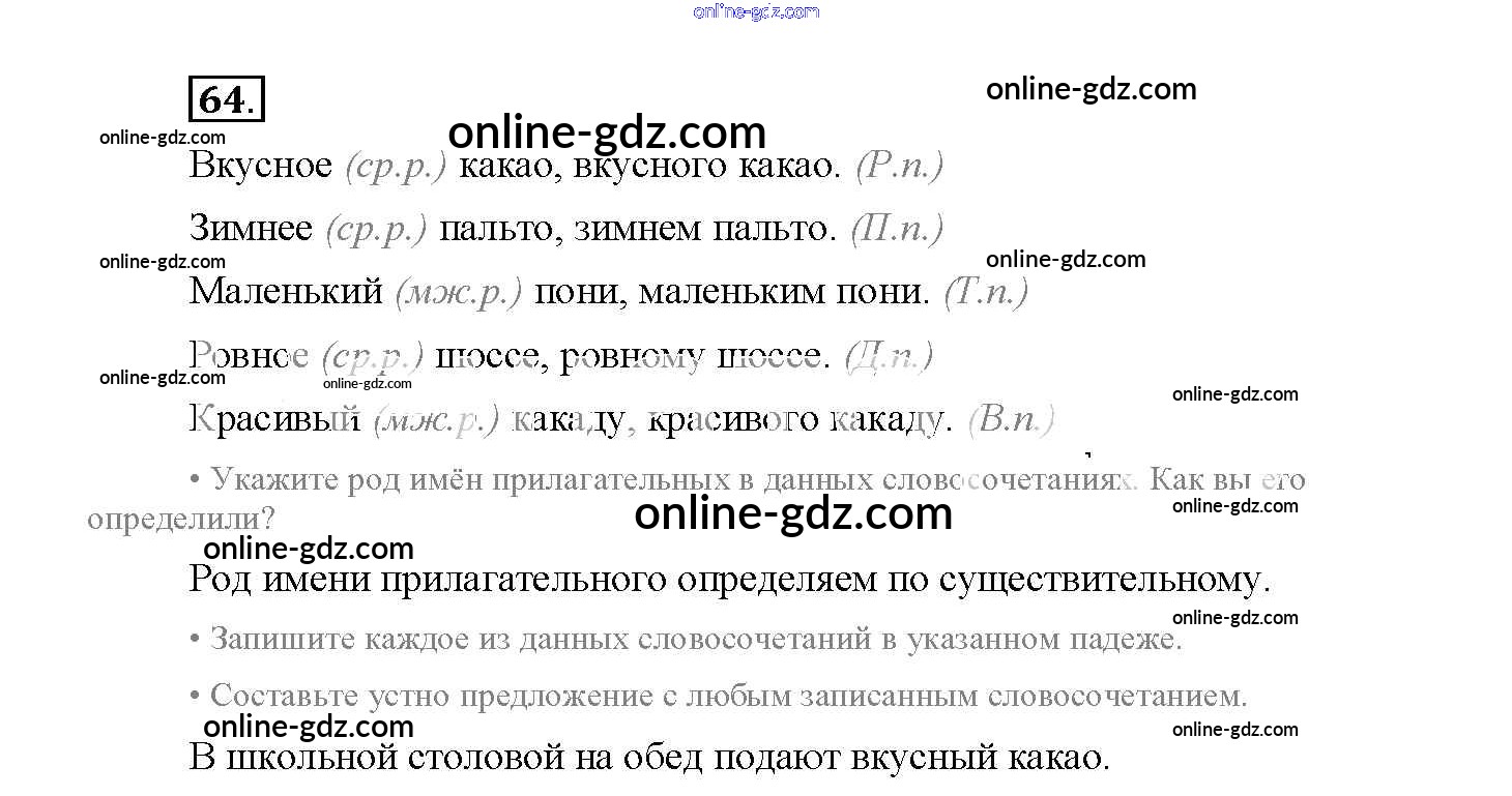 Готовые домашние задания по Русскому языку за 4 класс Рабочая тетрадь Канакина Школа России 2013 - Часть 2. Задания 64